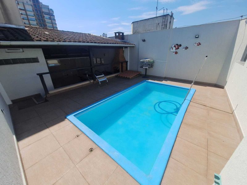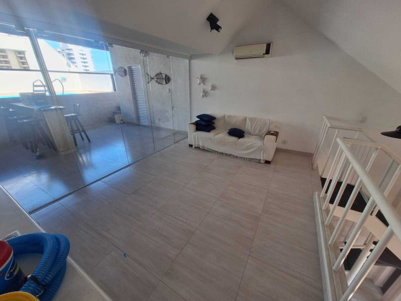 Cobertura Duplex com piscina e churrasqueira em lado praia, Enseada - Guarujá1° andar: Sala 2 ambientes com acesso a sacada, 3 dormitórios sendo 1 suíte, cozinha, banheiro.2° andar: Sala, amplo espaço gourmet com piscina e churrasqueira, banheiro.Prédio com elevador, 1 vaga de garagem.