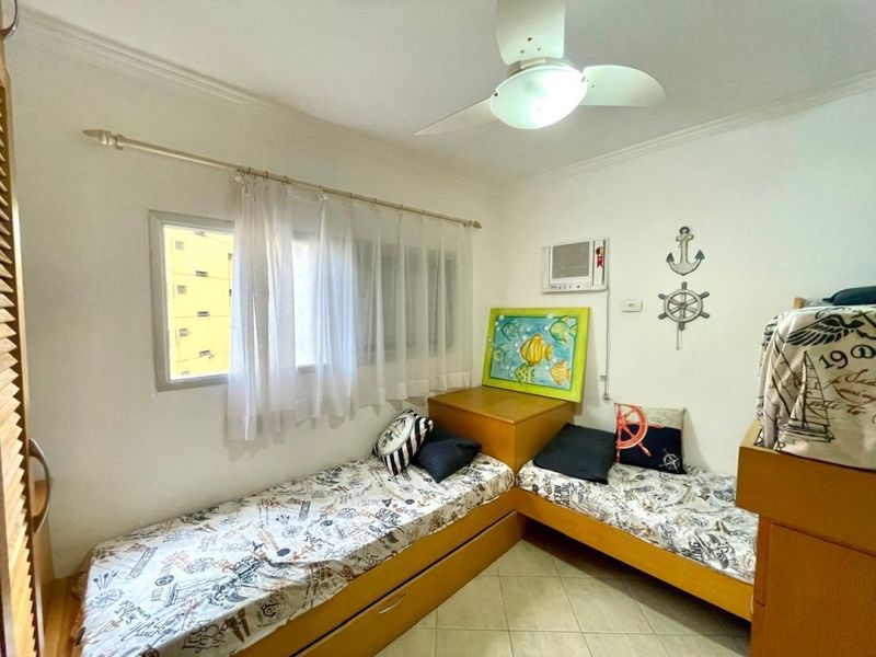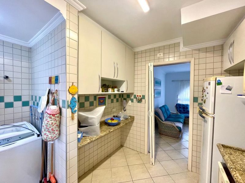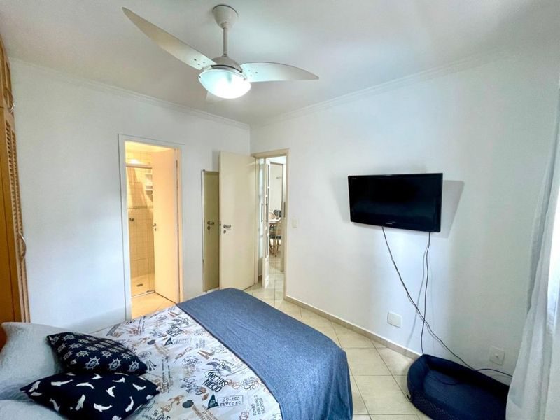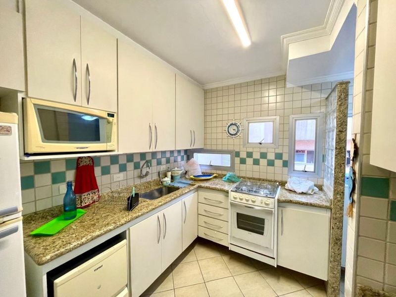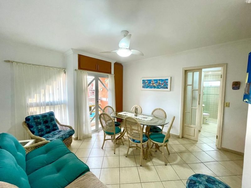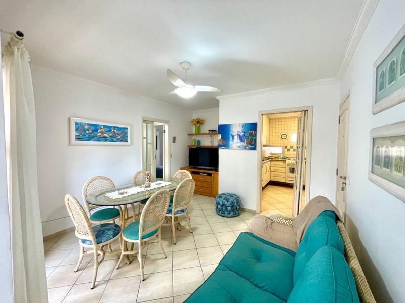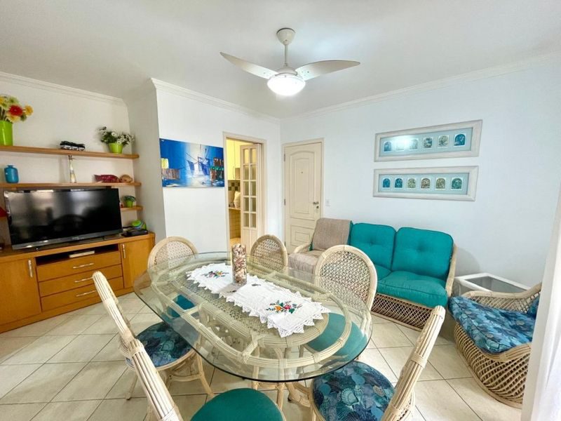 Apartamento mobiliado na Praia da Enseada, com 70m², 2 dormitórios sendo 1 suíte, sala 2 ambientes, sacada, cozinha com armários, área de serviço, 1 banheiro social.