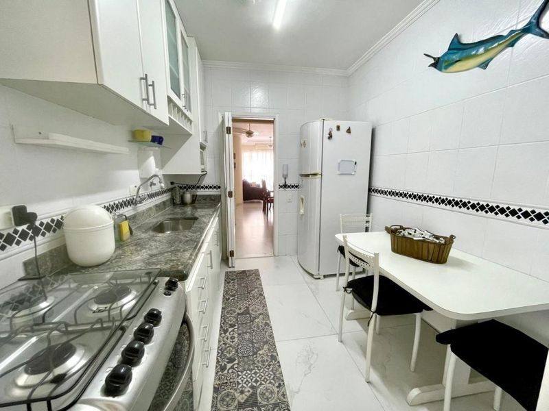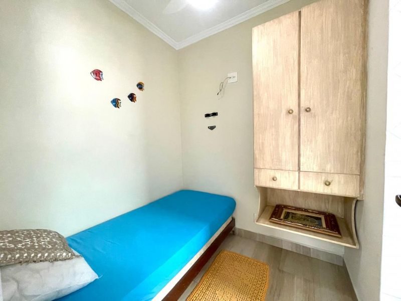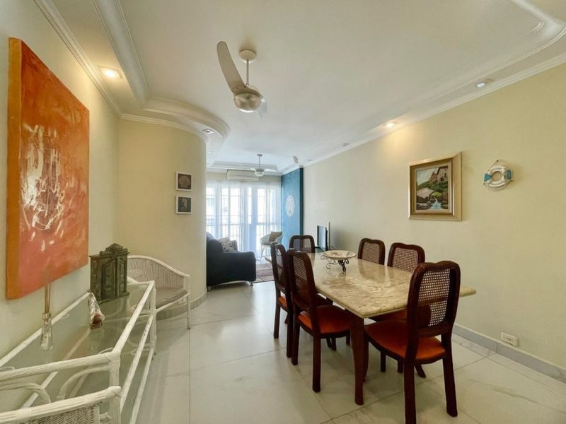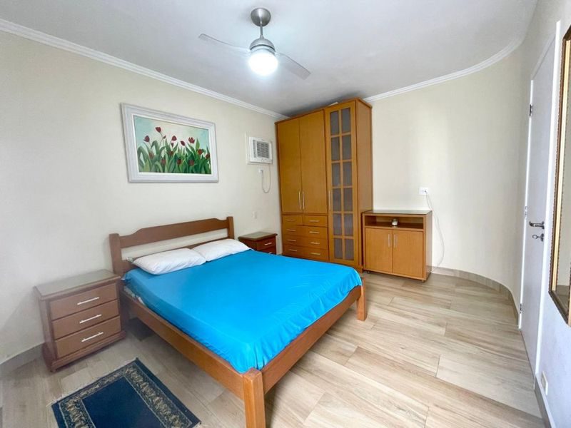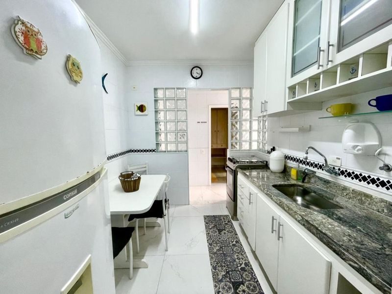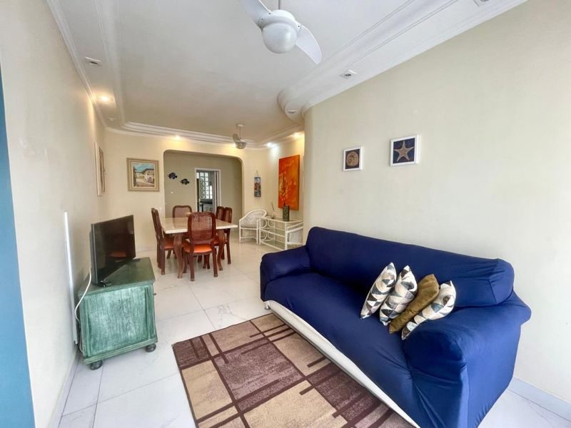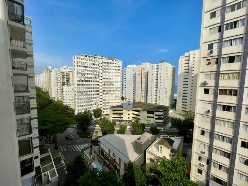 Excelente apartamento todo reformado, semimobiliado, 2 dormitórios sendo 1 suíte + dependência de empregada, sala 2 ambientes, sacada com vista parcial para o mar, cozinha com armários, área de serviço, 1 banheiro social e 1 banheiro de serviço.