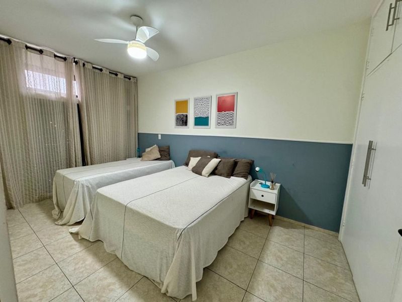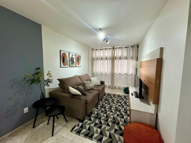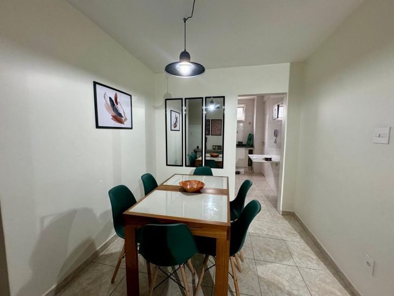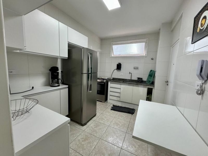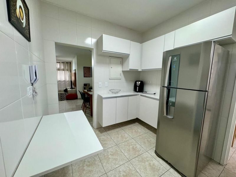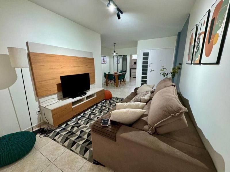 O apartamento está todo reformado e mobiliado com bom gosto. Possui 105m² bem distribuídos em 2 dormitórios + dependência de empregada, 2 banheiros, sala 2 ambientes, cozinha e área de serviço.