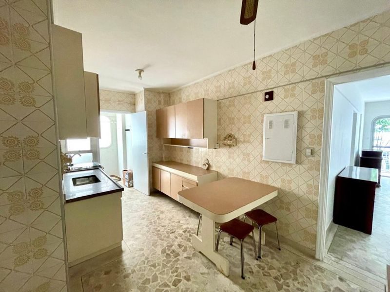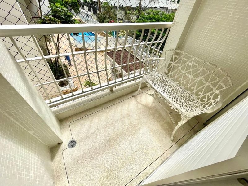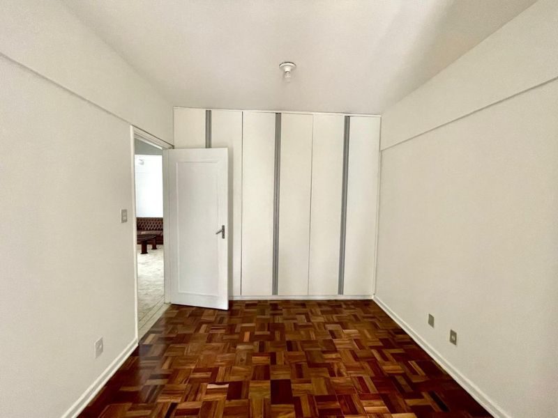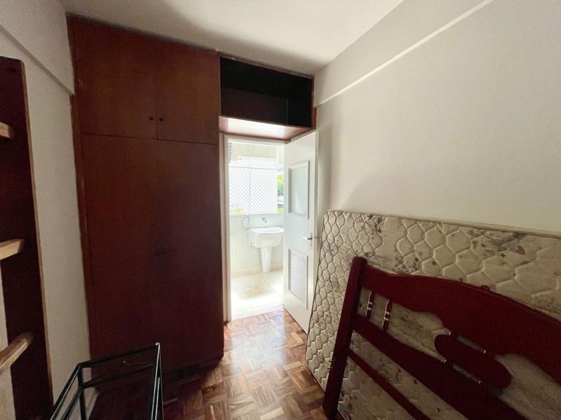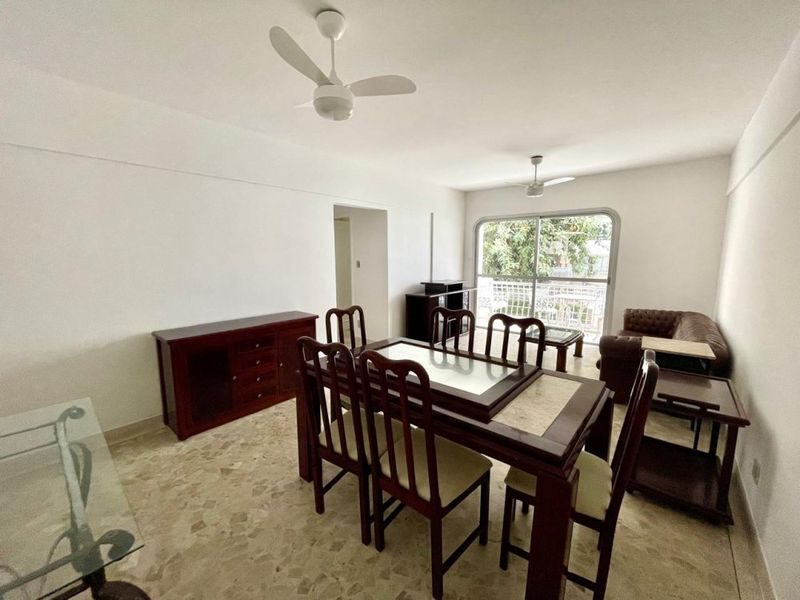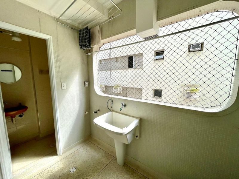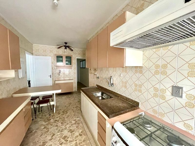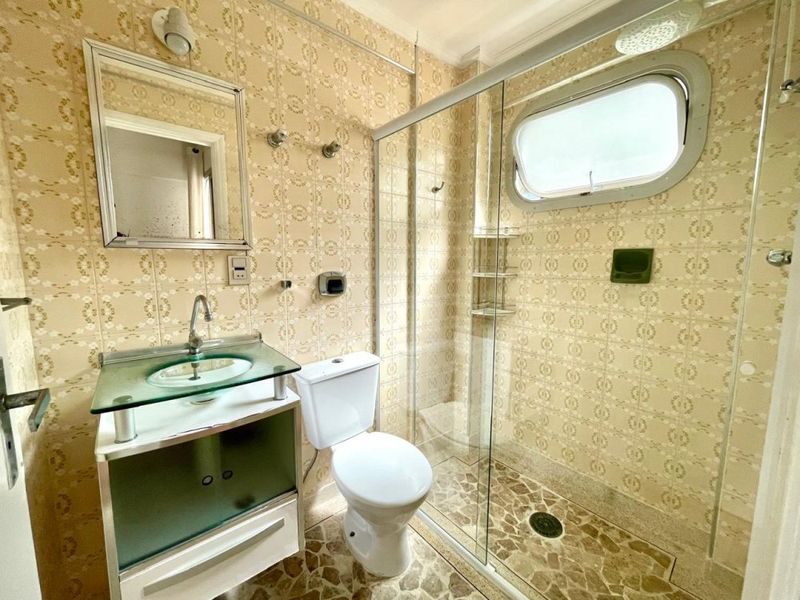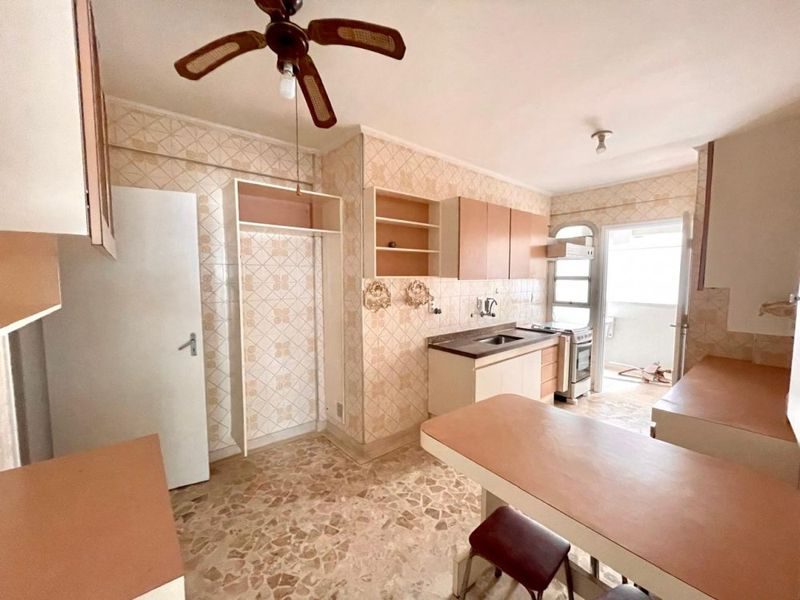Apartamento com 2 dormitórios sendo 1 suíte + dependência de empregada, sala 2 ambientes, sacada, cozinha com armários, área de serviço, 1 banheiro social e 1 banheiro de serviço.