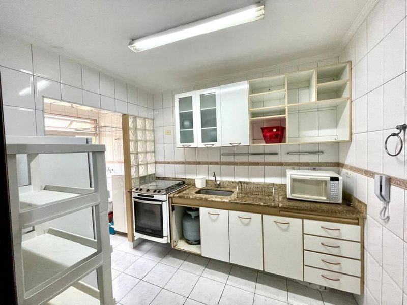 Apartamento de 80 m² de área útil, reformado, com 2 dormitórios + dependência de empregada reversível no 3° dormitório sala par a 2 ambientes, sacada, cozinha com armários, área de serviço, 1 banheiro social e banheiro de serviço.