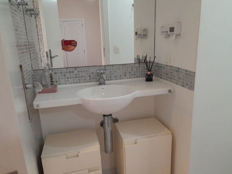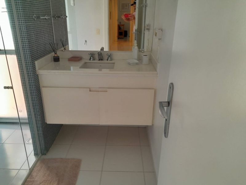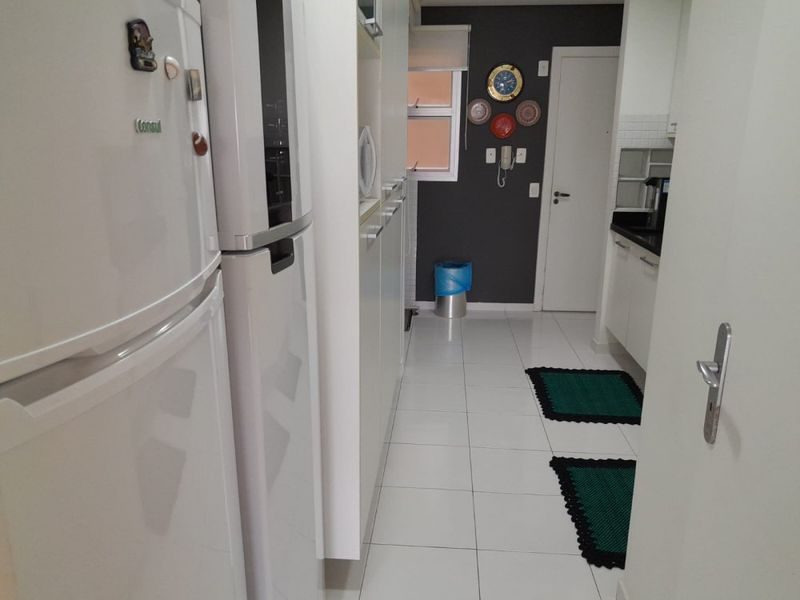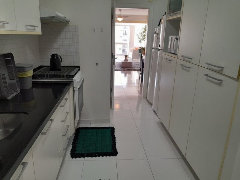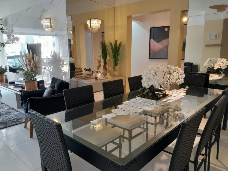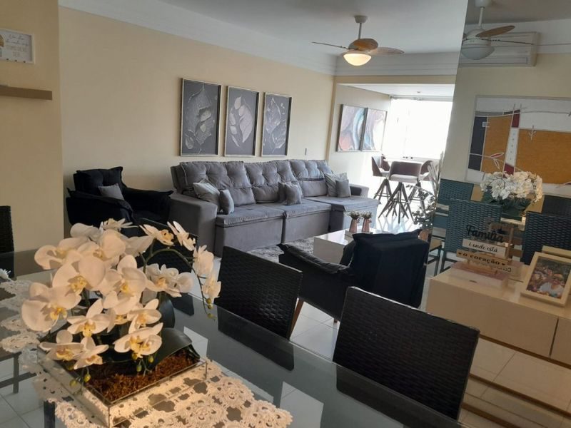 Com 4 suítes, 4 banheiros e um lavabo, sala para 3 ambientes, sacada com vista para o mar, cozinha, área de serviço.
