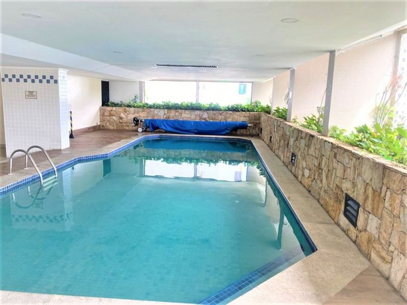 Prédio com elevador, portaria 24 horas, serviço de praia, piscina, academia, sauna, playground, salão de jogos.