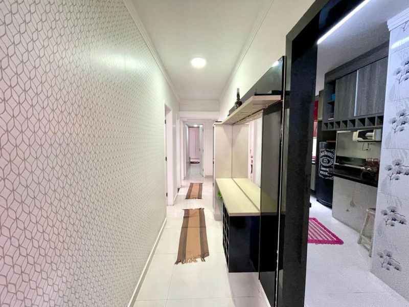 3 dormitórios sendo 1 suíte, sala 2 ambientes, sacada, cozinha com armários, área de serviço, 1 banheiro social.