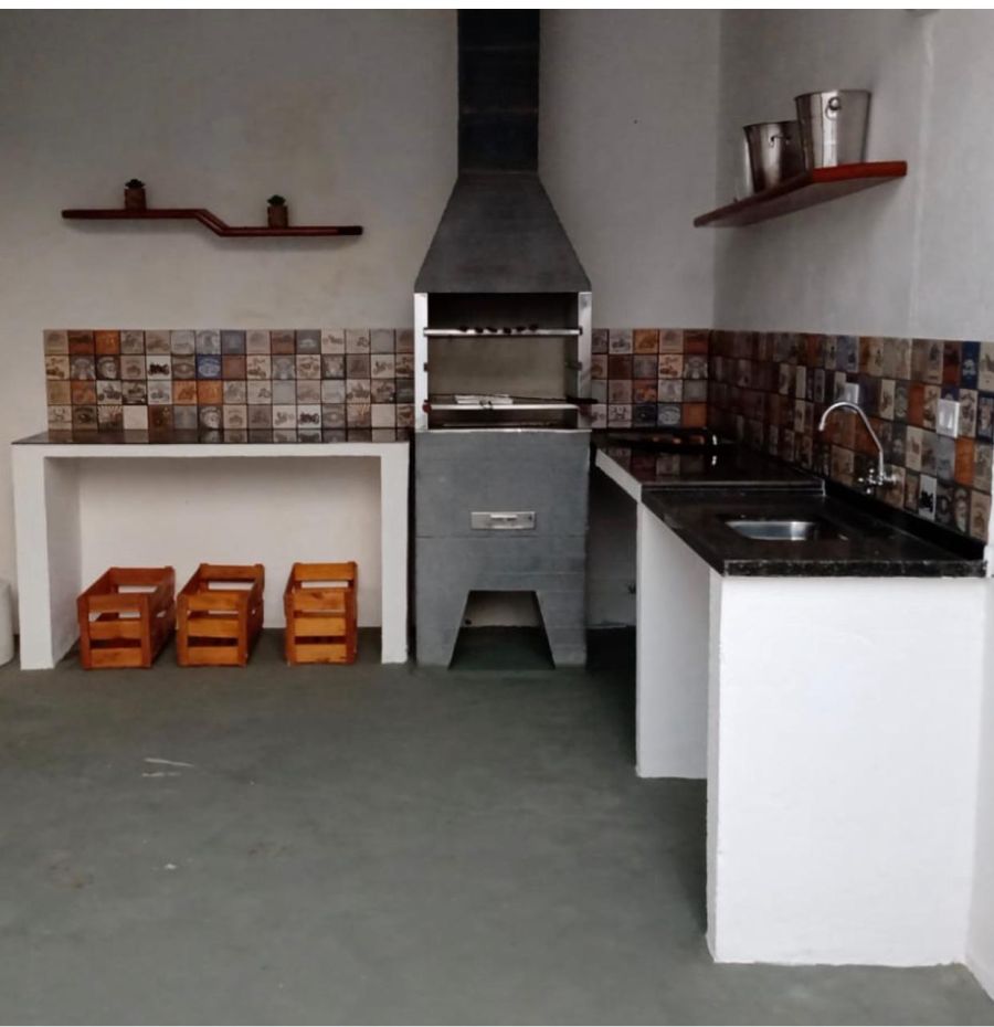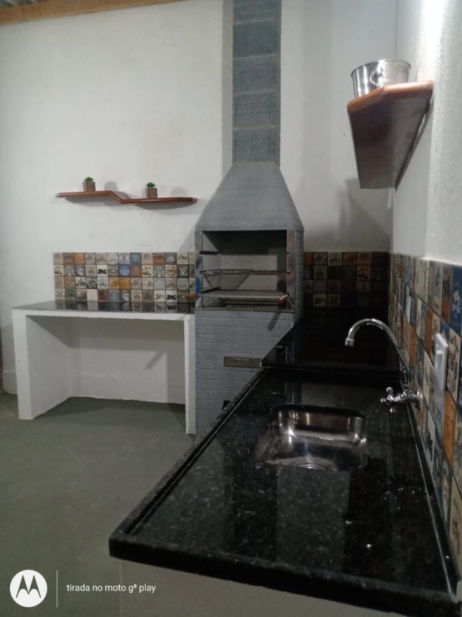 Amplo espaço externo com churrasqueira, quintal com área verde.