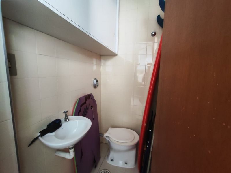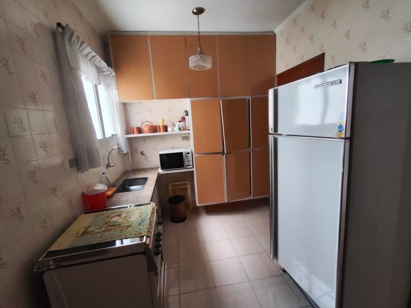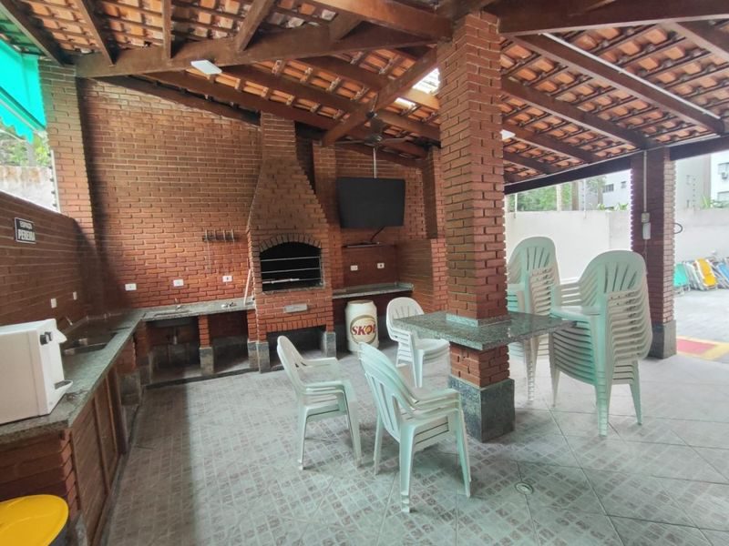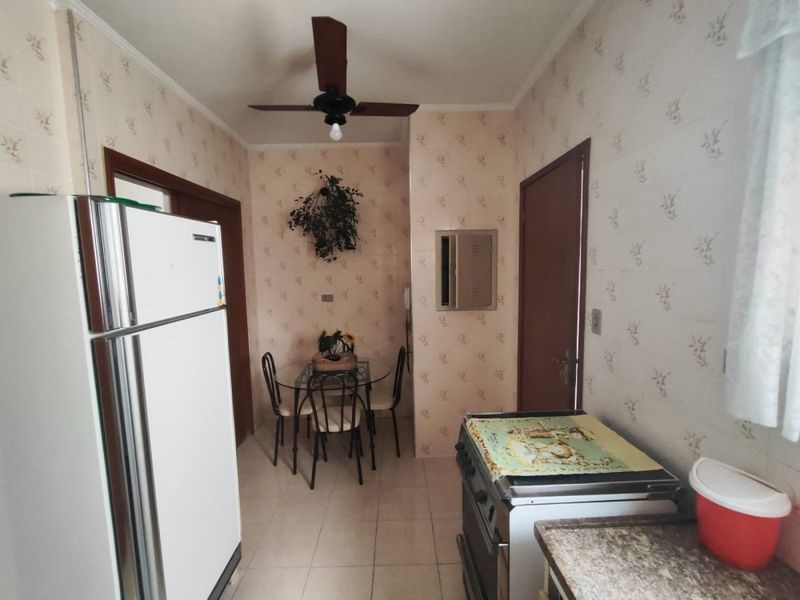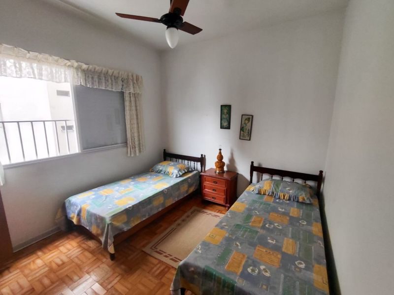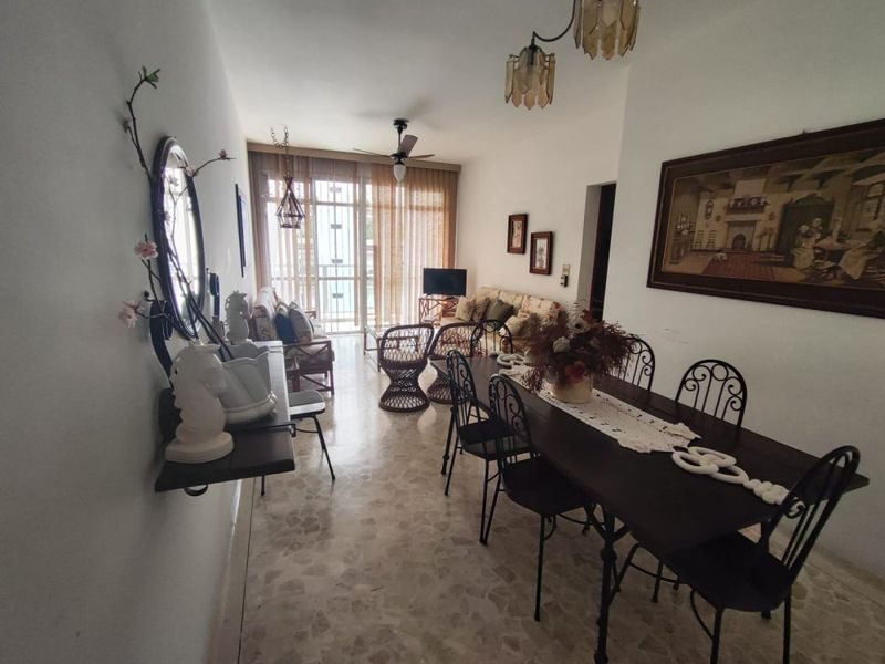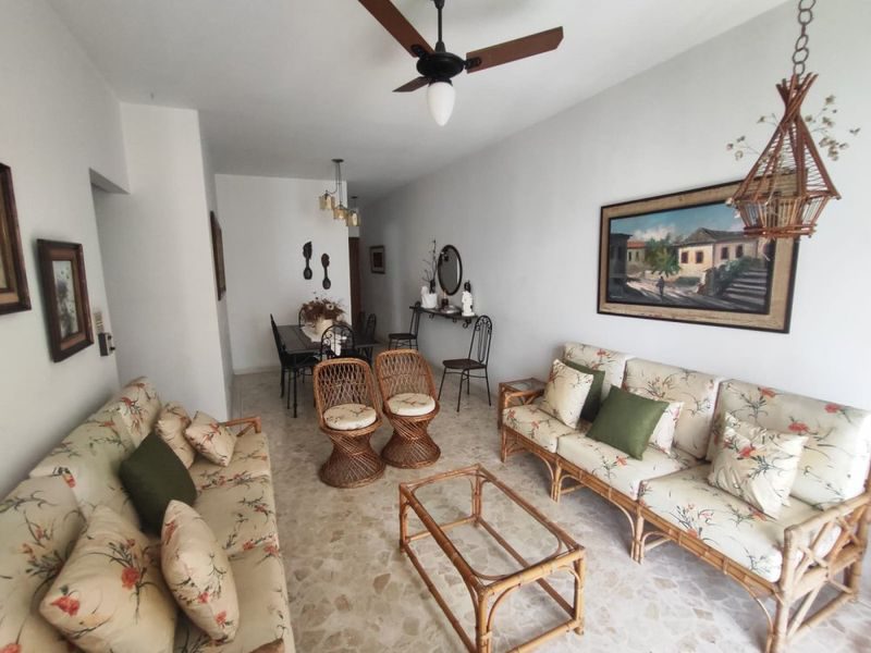 Apartamento localizado a 2 quadras da praia das Pitangueiras, mobiliado, 2 dormitórios sendo 1 suíte + dependência de empregada, sala para 2 ambientes, sacada, cozinha com armários, área de serviço, banheiro social e banheiro de serviço.