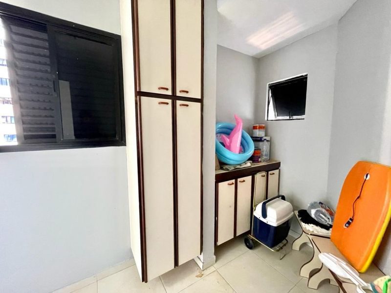 3 dormitórios sendo 1 suíte, sala 2 ambientes, lavabo, cozinha com armários, dependência de empregada, área de serviço, 1 banheiro social e 1 banheiro de serviço.