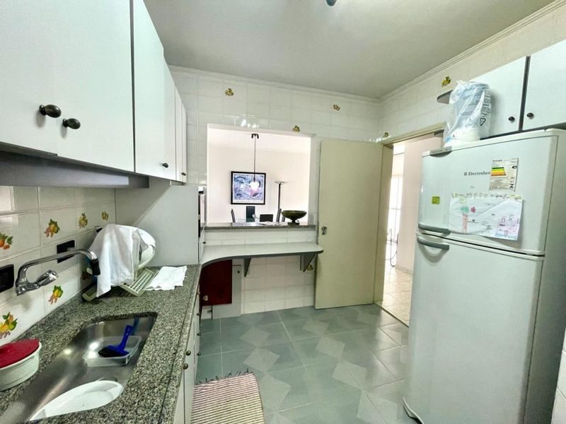 Apartamento de 83 m² de área útil, semimobiliado, 2 dormitórios sendo 1 suítes, ampla para 2 ambientes, sacada, cozinha com armários, área de serviço e 1 banheiro social.