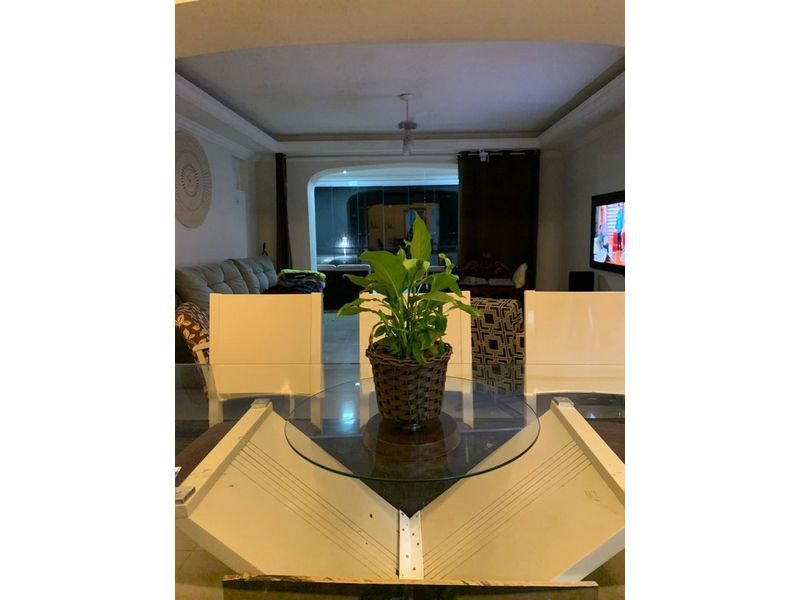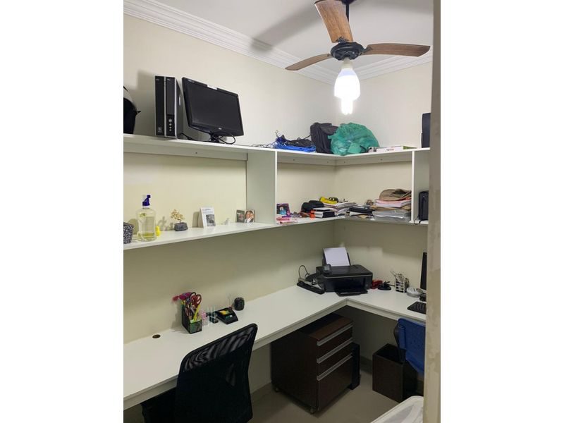 Três suítes, sendo uma master, ar condicionado, ventilador de teto, lavabo, escritório, sala de jantar e duas vagas de garagem.