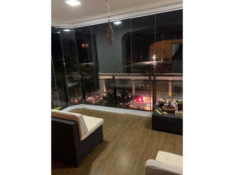 São 290 mts, sala estendida com a sacada e fechamento de vidro.