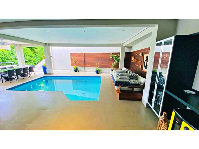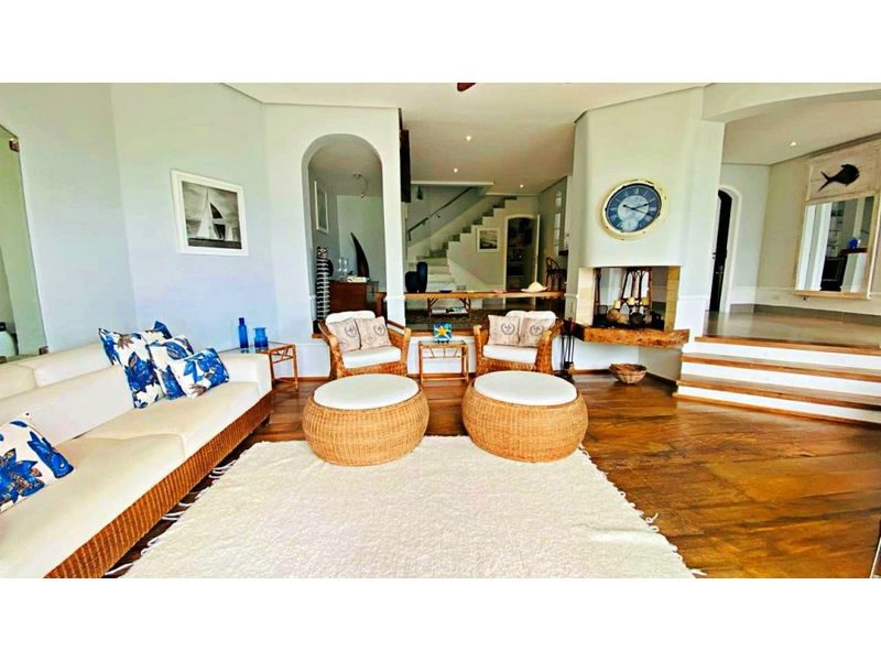 6 suítes, sala de estar, sala de jantar, sacada com vista para o mar, cozinha ampla com armários, área de serviço, 9 banheiros, vaga de garagem para 4 carros, ótima área externa com piscina.