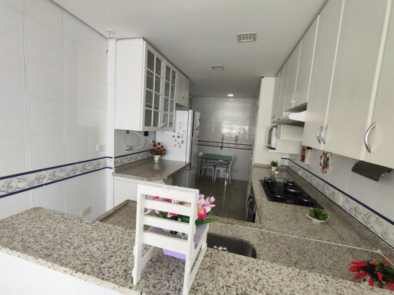 Apartamento com 3 dormitórios sendo 2 suítes, sala 2 ambientes, sacada com vista parcial para o mar, cozinha com armários, área de serviço, 1 banheiro social, lavabo, 2 vagas de garagem.