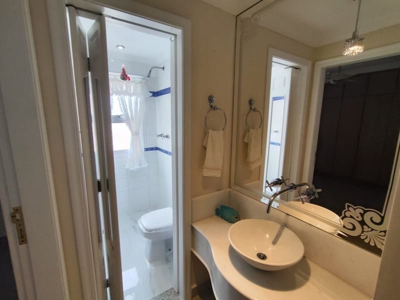 Prédio com elevador, portaria 24 horas, serviço de praia, churrasqueira, salão de festas, piscina, sauna e quadra poliesportiva.