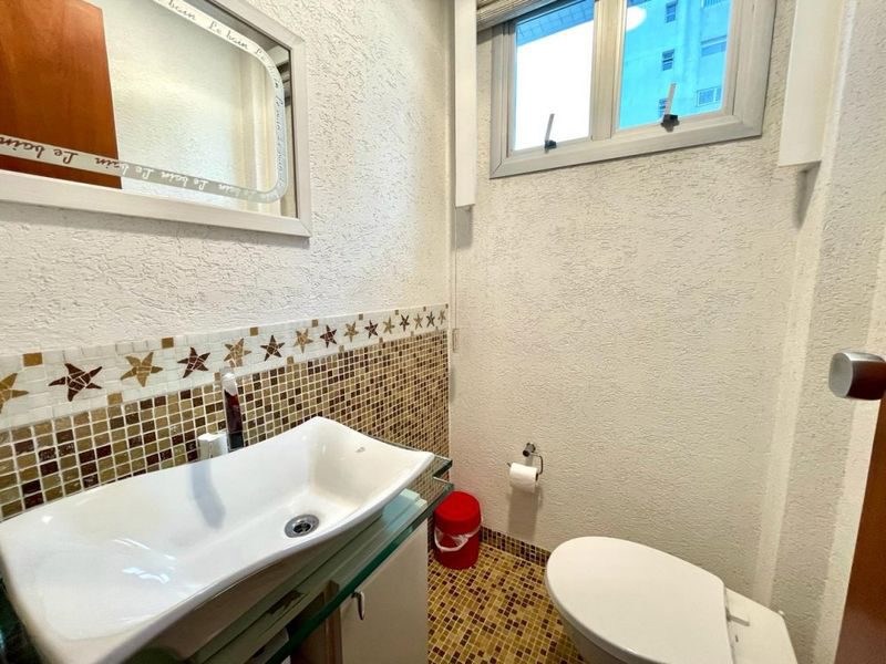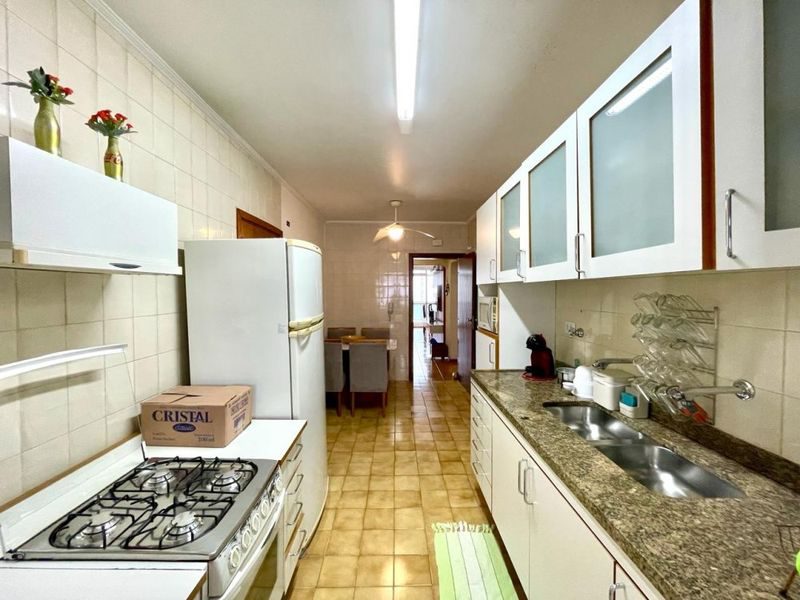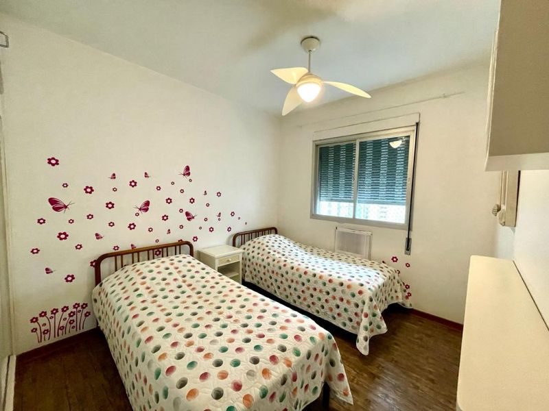 Prédio com elevador, portaria 24 horas, serviço de praia, piscina e churrasqueira.
