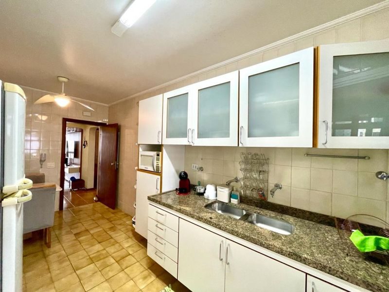 3 dormitórios sendo 1 suíte + dependência de empregada, sala 2 ambientes, sacada com churrasqueira, cozinha, área de serviço, lavabo, 1 banheiro social e 1 banheiro de serviço.