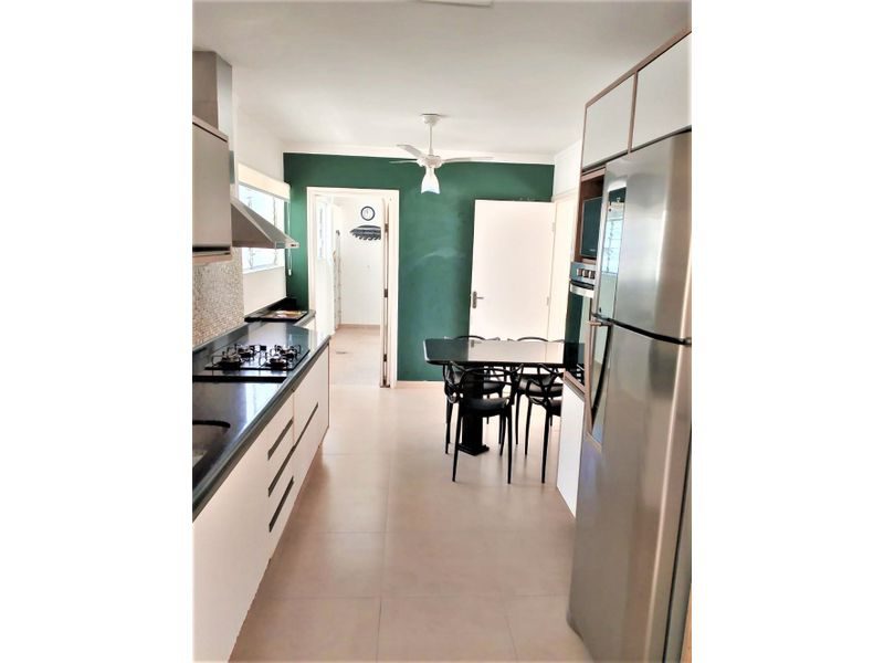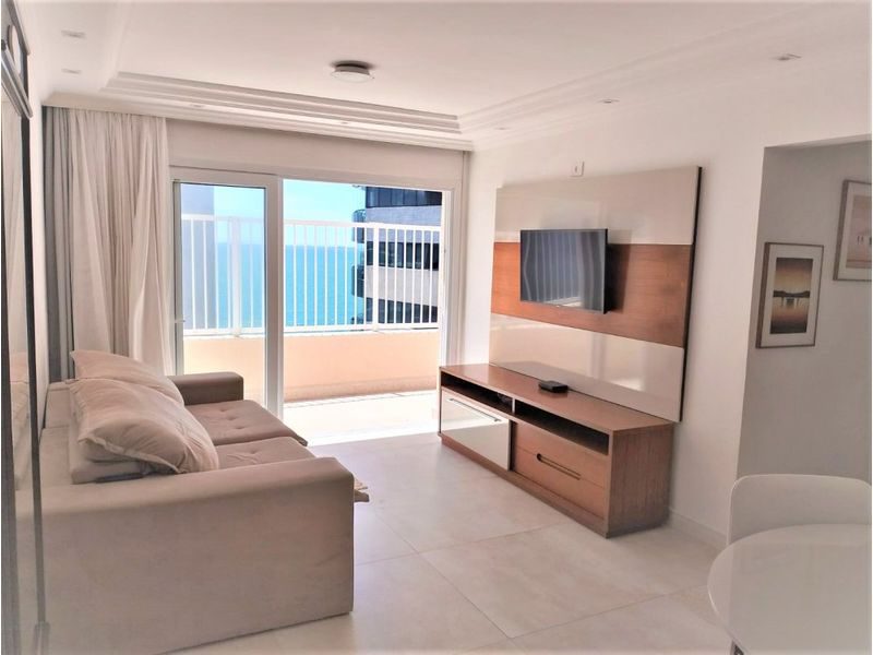 3 Dormitórios sendo 2 suítes, sala ampla para 2 ambientes, sacada e área externa com vista para o mar, cozinha com armários, área de serviço, dispensa, 2 banheiros.