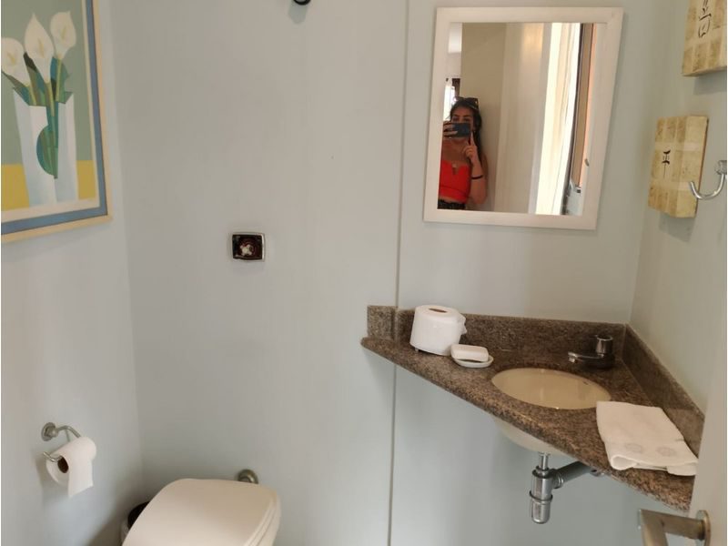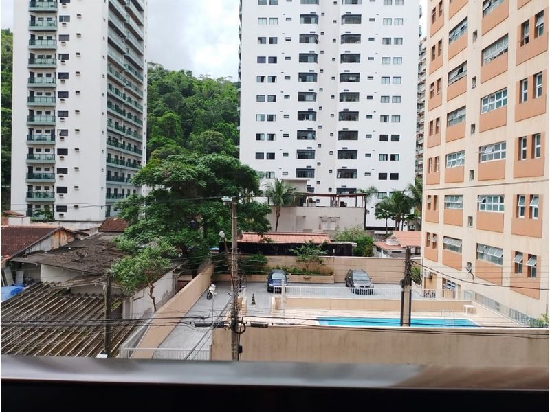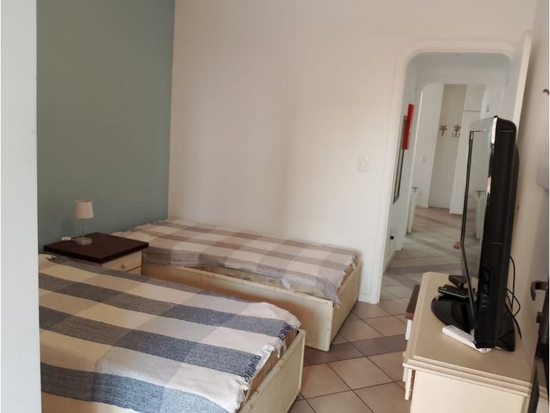 Prédio com elevador, portaria 24 horas e serviço de praia.
