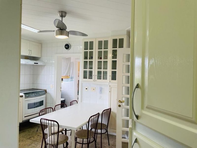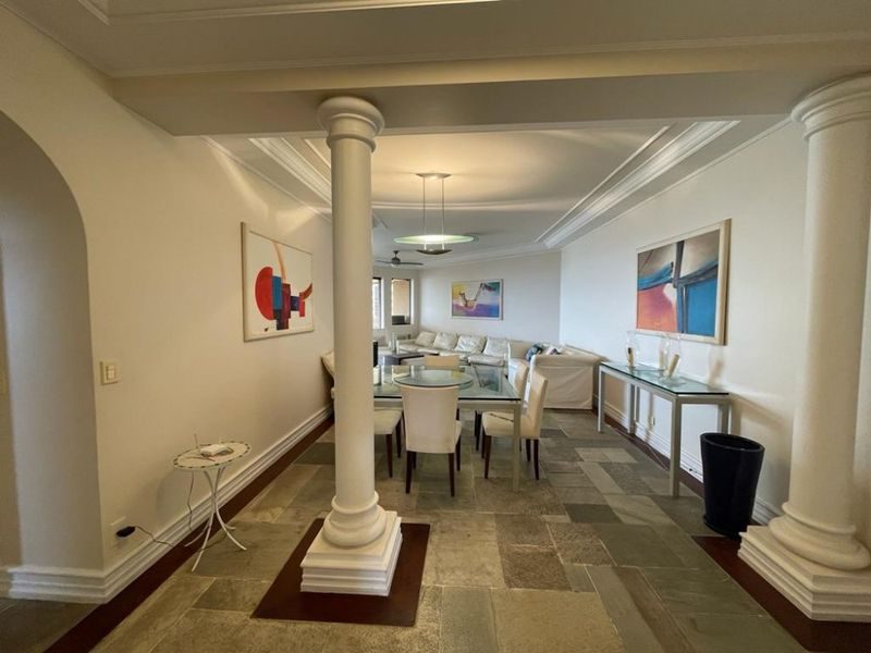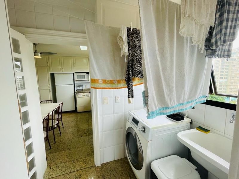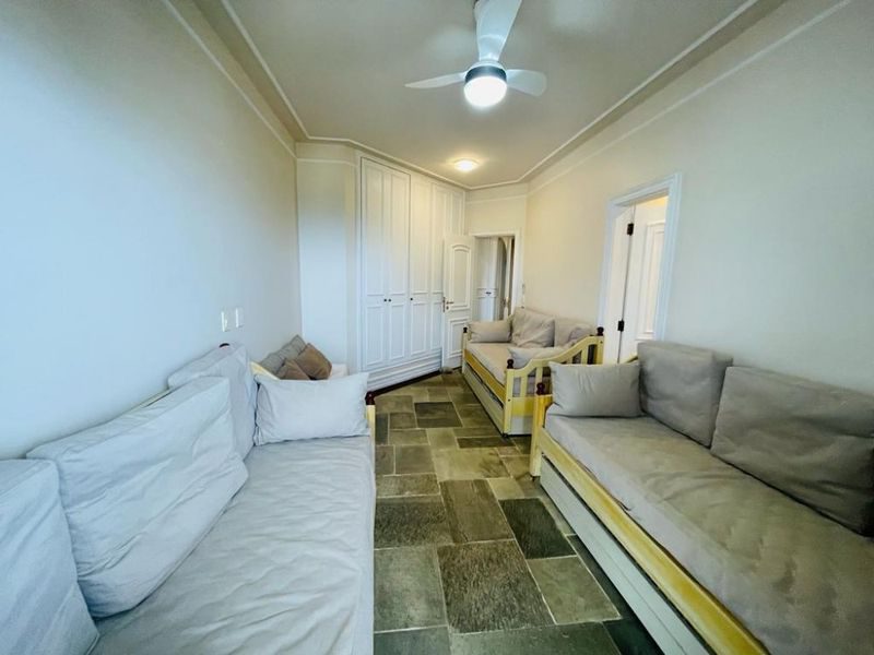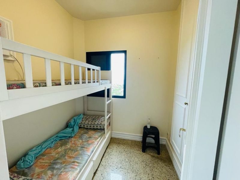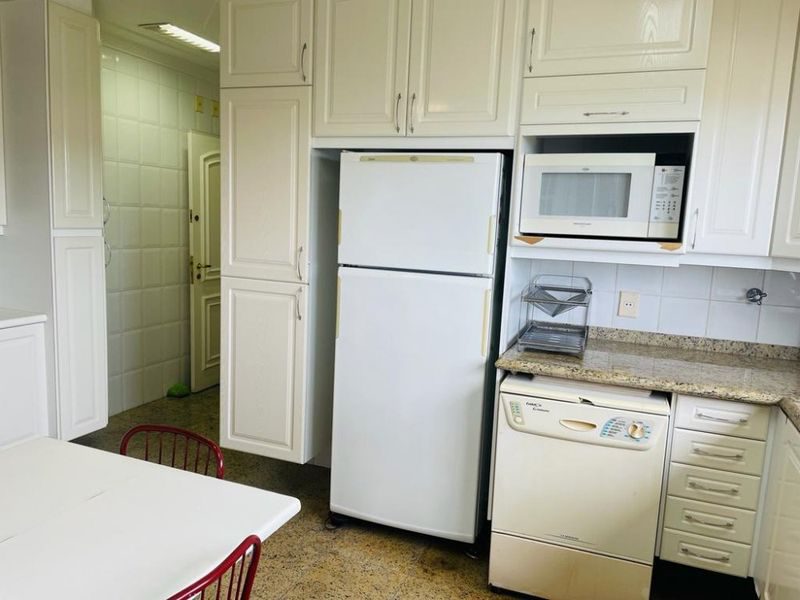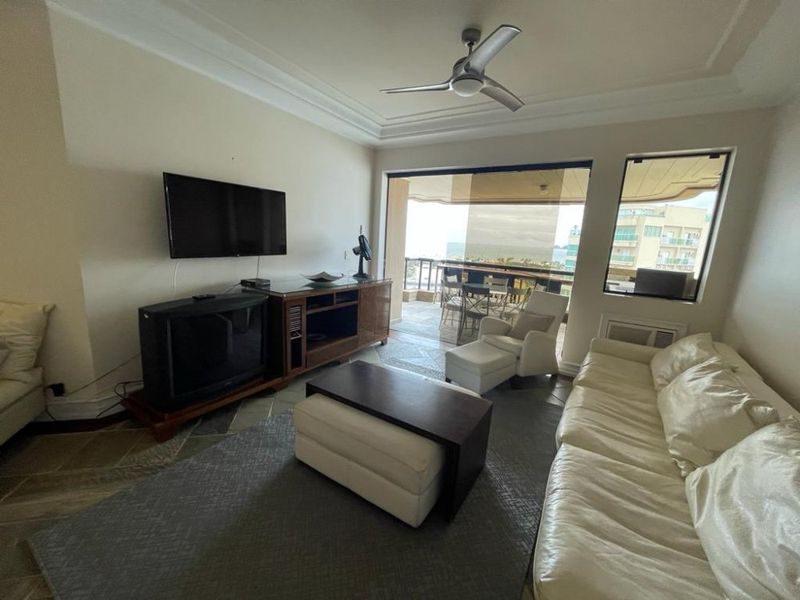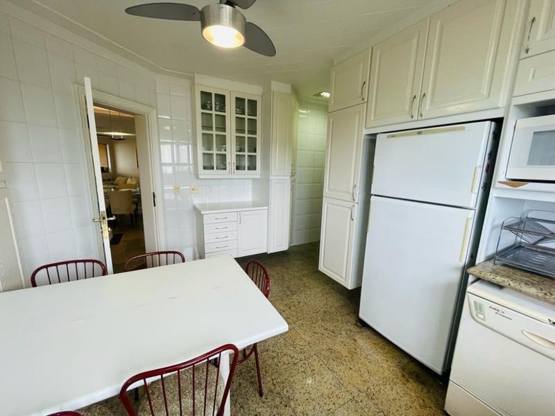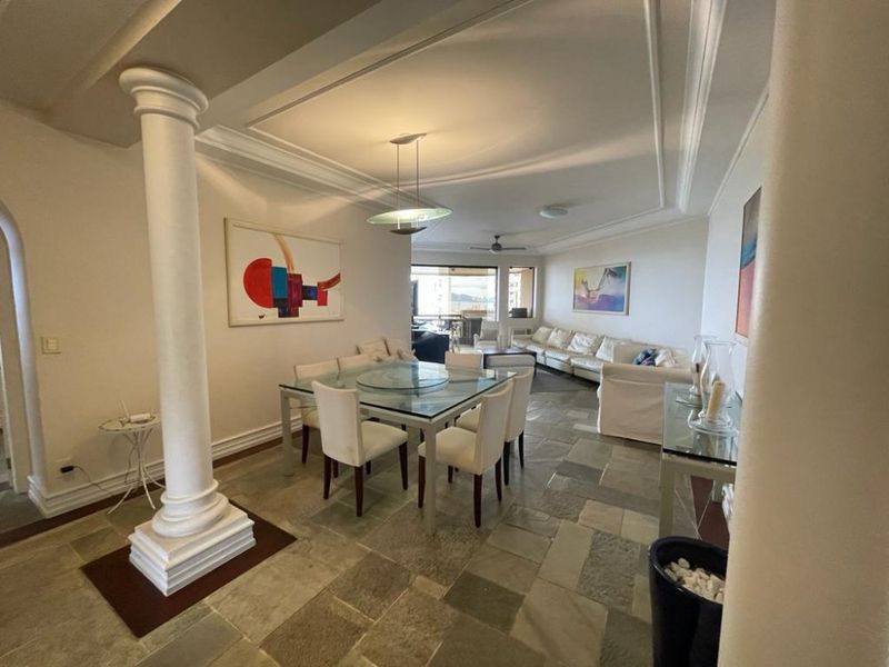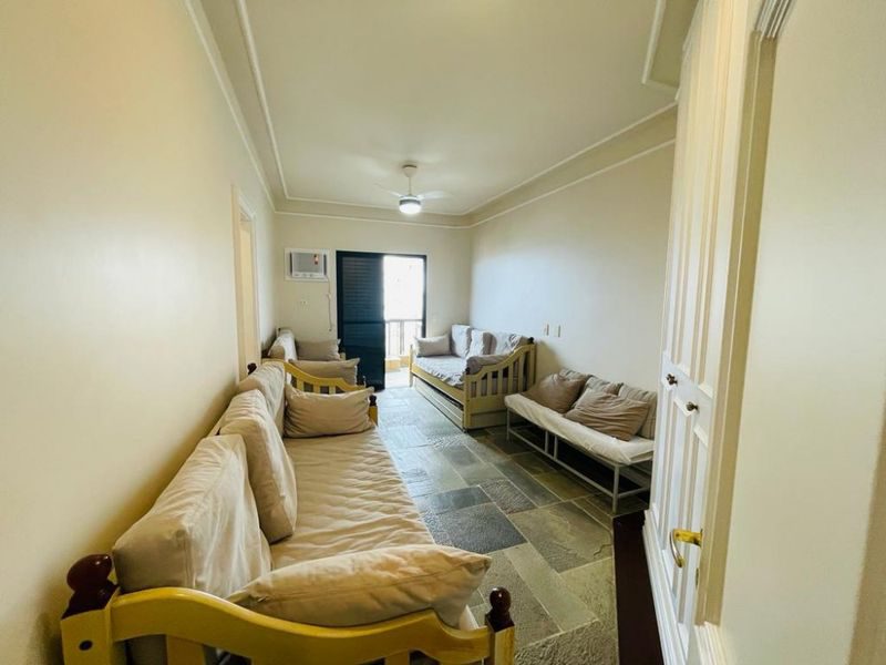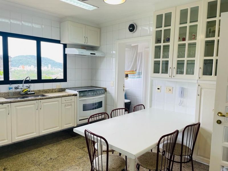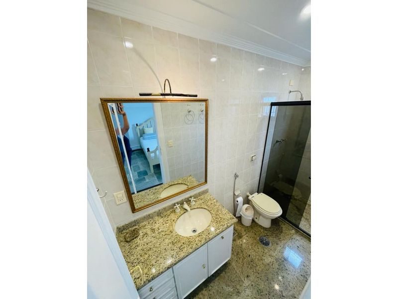 Reformado, mobiliado, com 3 suítes + dependência de empregada suíte reversível 4° suíte, sala ampla para 3 ambientes, sacada gourmet com vista para o mar, cozinha com armários, área de serviço, 1 banheiro social e 2 vagas de garagem.