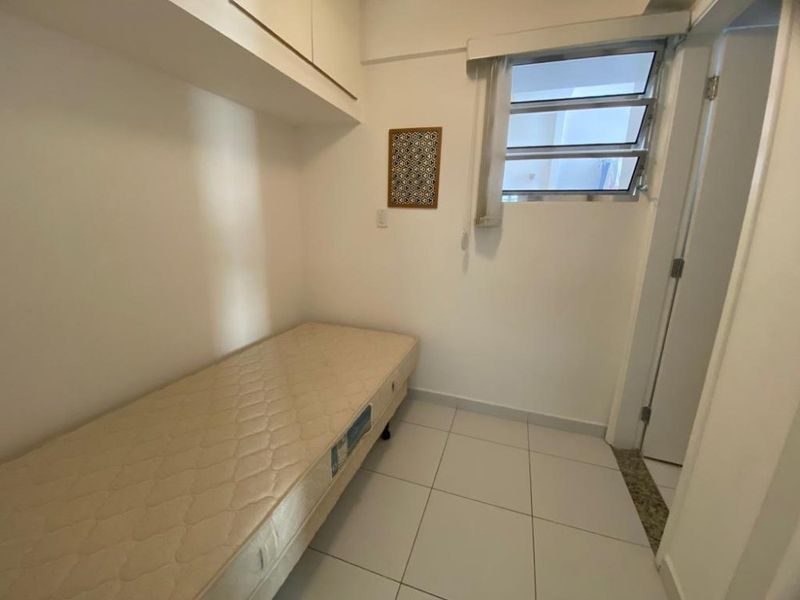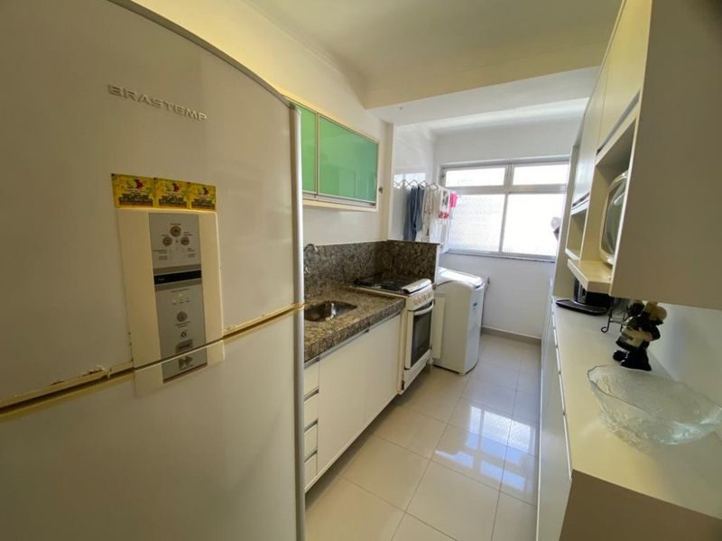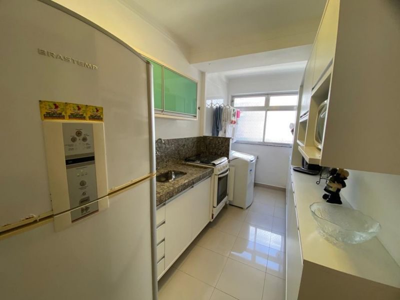 Prédio com elevador, portaria 24 horas e serviço de praia.
