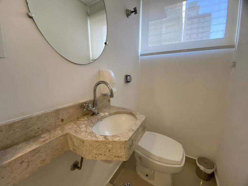 Cozinha americana com armários, área de serviço, 1 banheiro social, lavabo.