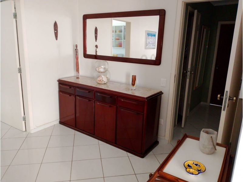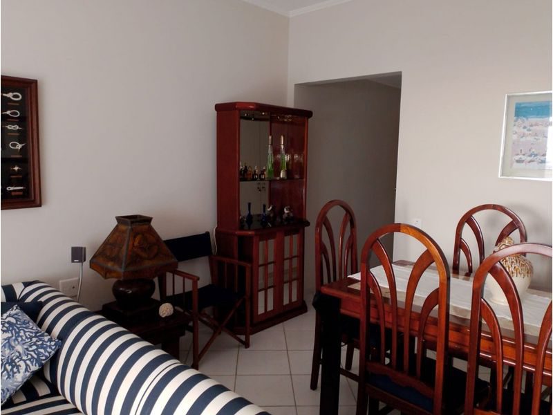 Mobiliado, 2 dormitórios, sala para 2 ambientes com sacada e vista para o mar, cozinha, área de serviço, dependência de empregada, 1 banheiro social e 1 banheiro de serviço.