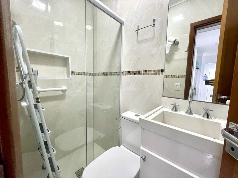 Prédio com elevador, portaria 24 horas, serviço de praia.