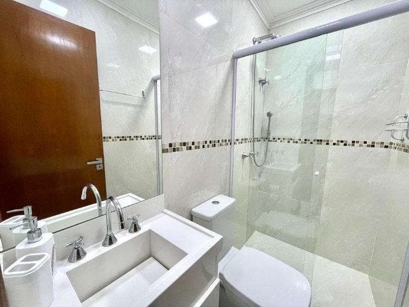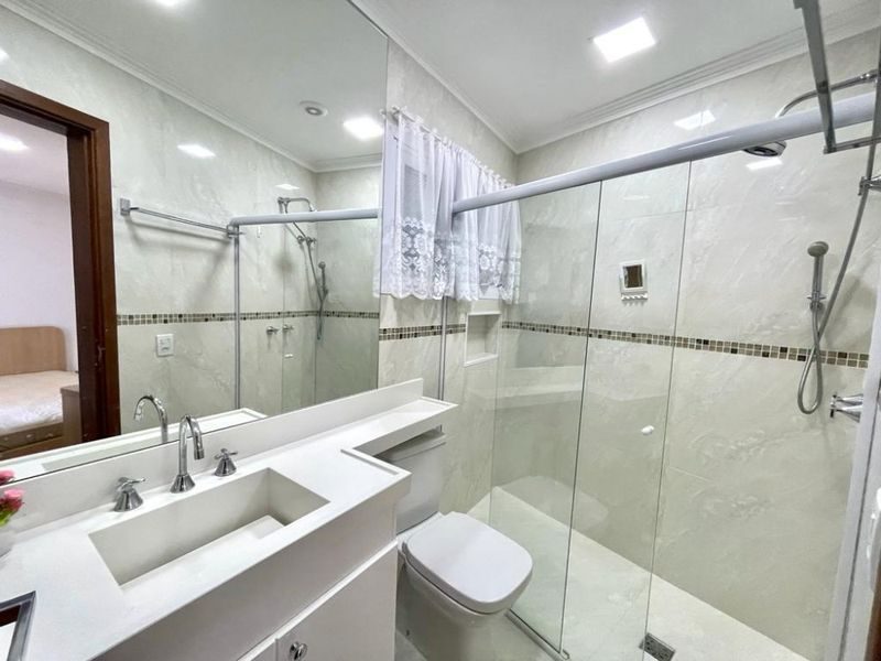 4 dormitórios sendo 4 suítes, sala ampla de 2 ambientes, cozinha americana, área de serviço com banheiro.