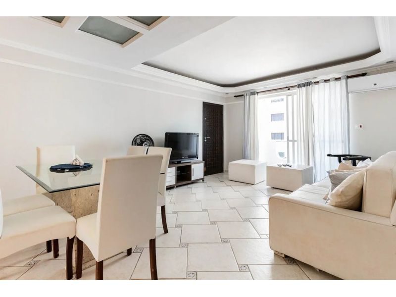 Excelente apartamento, reformado, mobiliado, à 2 quadras da praia, 111 m² bem distribuídos, 3 dormitórios sendo 1 suíte + dependência de empregada, wc social, ampla sala para 2 ambientes, lavabo, cozinha com armários, área de serviço, banheiro de serviço, sacada com vista parcial para o mar, serviço de praia, portaria 24 horas e 2 vagas de garagem.