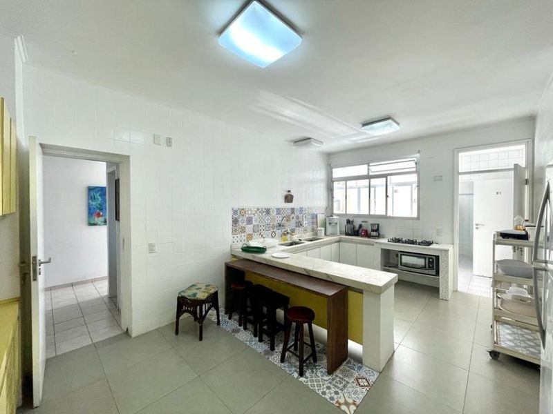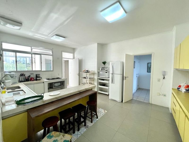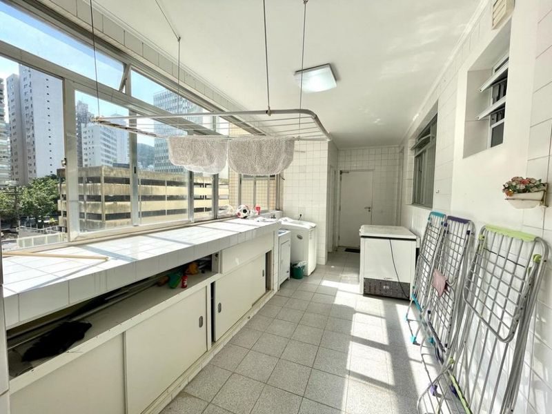 Apartamento frente ao mar, 230 m² bem distribuídos em 4 dormitórios sendo 1 suíte + dependência de empregada, wc social, ampla sala para 2 ambientes, lavabo, cozinha com armários, área de serviço, banheiro de serviço, portaria 24 horas, elevadores, serviço de praia, salão de festas, academia e 2 vagas de garagem.