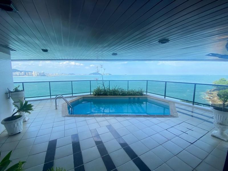 Belíssimo apartamento de alto padrão frente ao mar, com 367 m² bem distribuídos, reformado, mobiliado, finamente decorado, 4 suítes, wc social, ampla sala para 3 ambientes, lavabo, cozinha com móveis planejados, área de serviço, suíte de empregada, ampla sacada com vista total para o mar, piscina privativa, portaria 24 horas, elevadores, serviço de praia, área de lazer completíssima e 2 vagas de garagem.