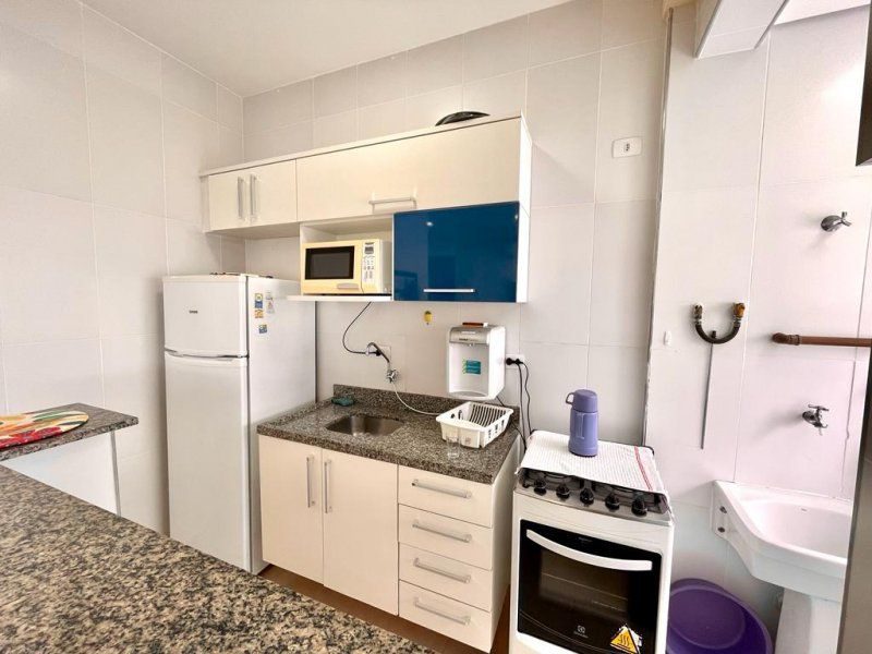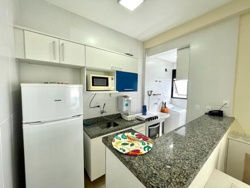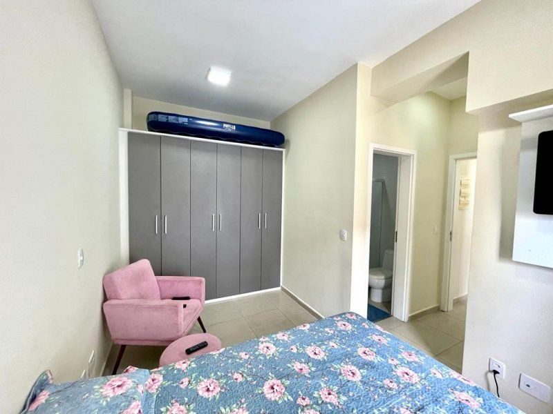 Flat à 1 quadra da praia, 2 dormitórios sendo 1 suíte, wc social, ampla sala, cozinha com armários, área de serviço, sacada, portaria 24 horas, elevadores, serviço de praia, academia, salão de jogos, piscina, churrasqueira, sauna e 2 vagas de garagem. Ótima oportunidade!