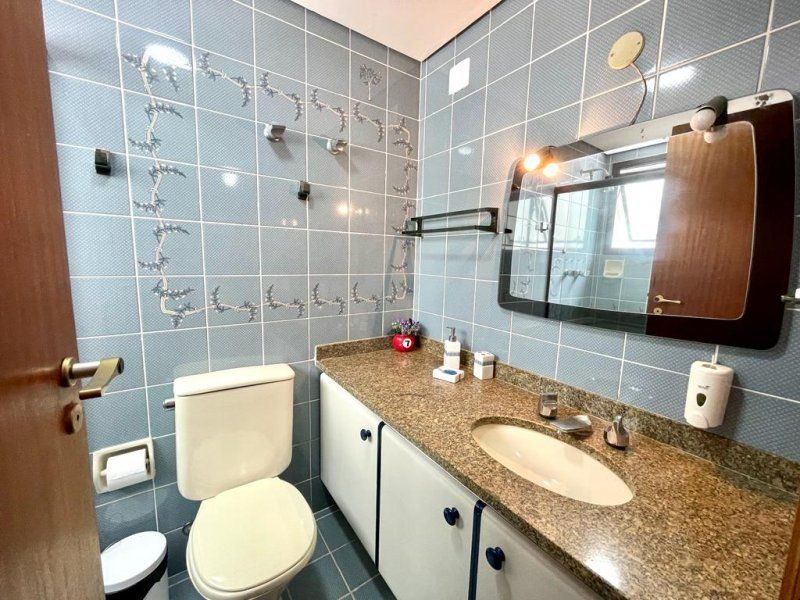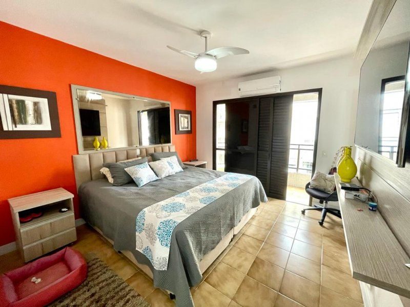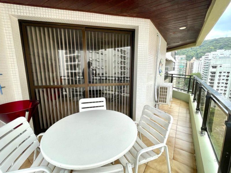 Apartamento de alto padrão com ampla sacada e vista para o mar, 3 dormitórios sendo 2 suítes (1 com closet e banheira) + dependência, lavabo, 2 salas, wc social, cozinha com armários, área de serviço, banheiro de serviço, serviço de praia, portaria 24 horas, elevadores, salão de jogos, piscina, churrasqueira, salão de festas, academia, sauna seca, úmida e 2 vagas de garagem.