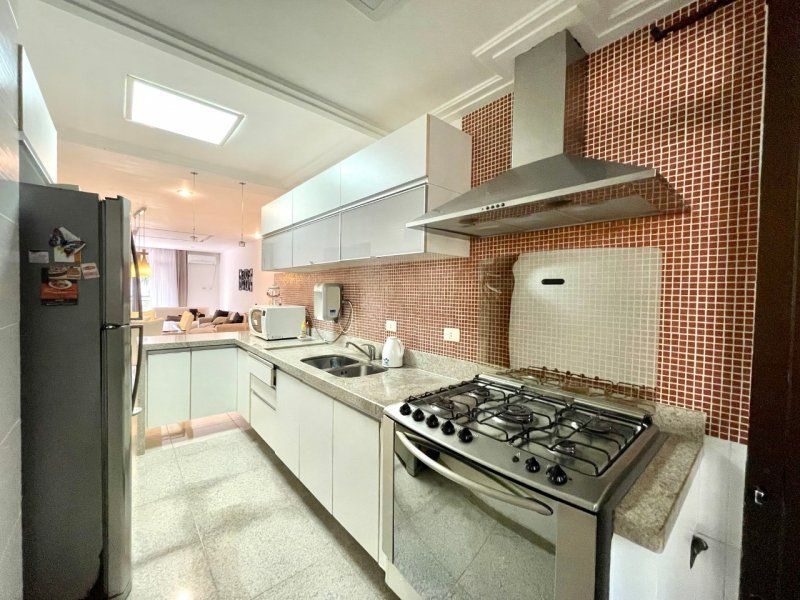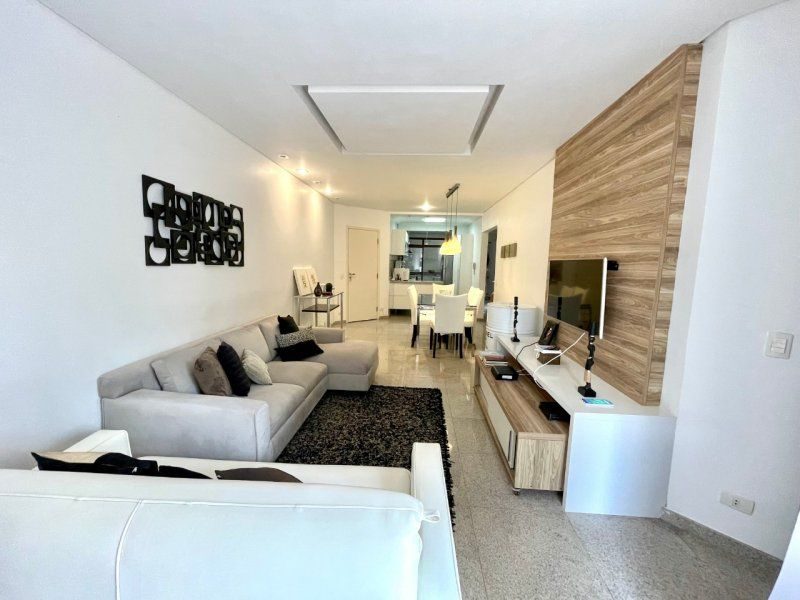 Apartamento reformado, sem mobília, 2 dormitórios sendo 1 suíte, wc social, sala para 2 ambientes, cozinha com armários, área de serviço, banheiro de serviço, sacada, serviço de praia, portaria 24 horas, elevadores, piscina, churrasqueira, salão de festas e 2 vagas de garagem.