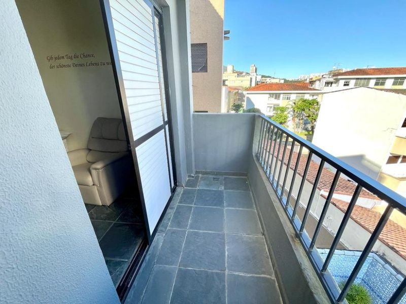 Sala com sacada; cozinha com armários; área de serviço e banheiro social.