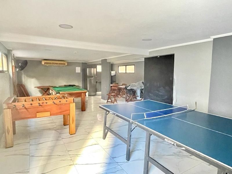 Prédio a 3 quadras da praia, elevador, área de lazer, com piscina, sauna, churrasqueira, playground, salão de festas e salão de jogos.