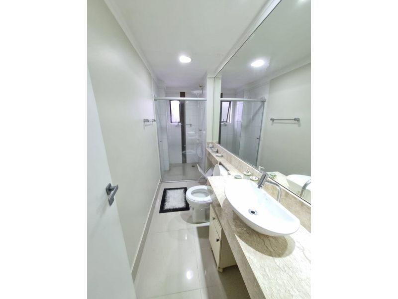 Excelente apartamento, totalmente reformado, semi mobiliado, ampla sacada, 3 dormitórios sendo 2 suítes, wc social, lavabo, sala para 2 ambientes, cozinha com armários, área de serviço, quarto reversível + banheiro (feito suíte), ar condicionado em todos dormitórios e sala, portaria 24 horas, elevadores, piscina adulto e infantil, serviço de praia e 2 vagas de garagem.