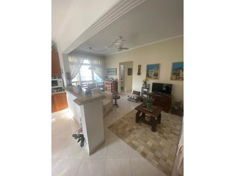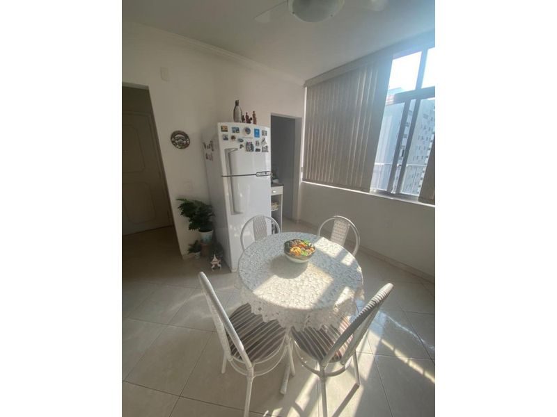 Apartamento todo reformado, semi mobiliado, com 2 dormitórios + dependência de empregada reversível, sala 2 ambientes, cozinha conceito aberto, sacada, área de serviço. Prédio com elevador, portaria 24 horas, serviço de praia, 50 metros da praia e sem vaga de garagem.