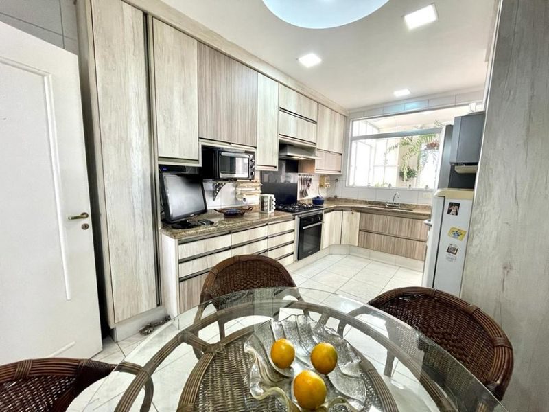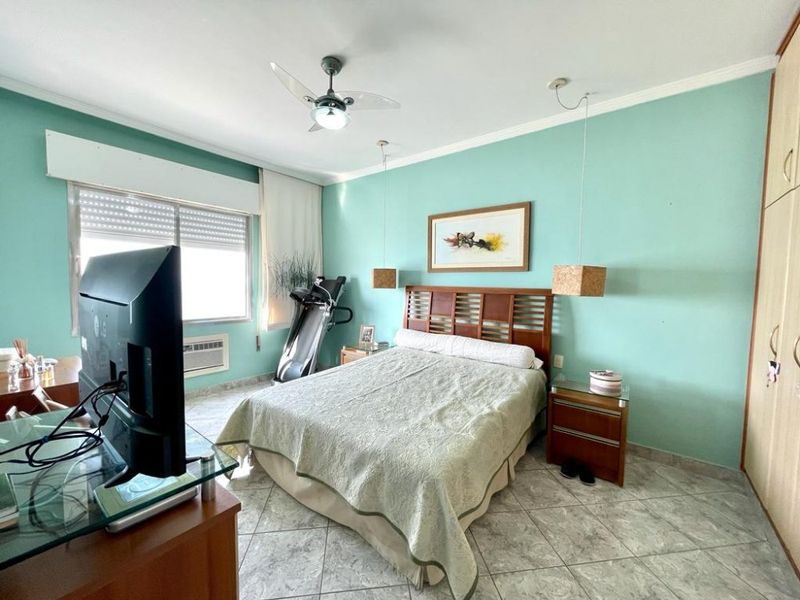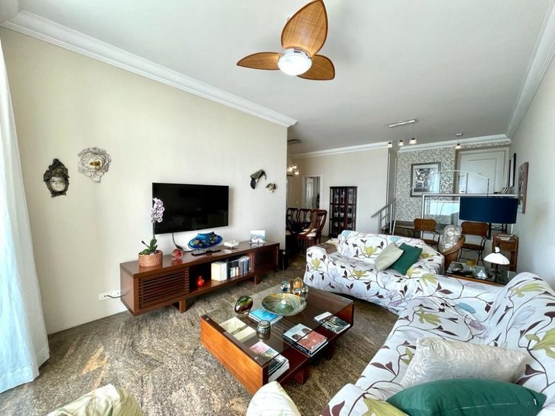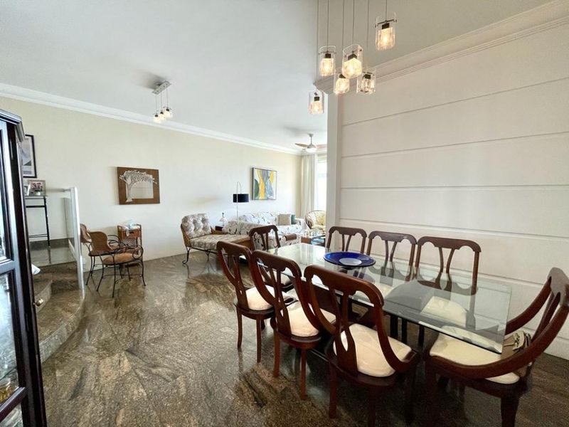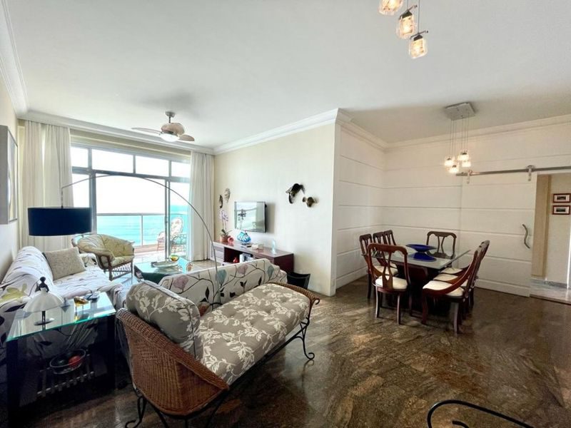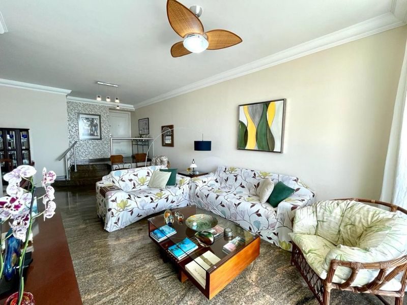 4 Dormitórios sendo 2 suítes, 2 salas, sacada com linda vista para o mar, cozinha com armários, área de serviço, total de 4 banheiros, dependência de empregada, área externa com churrasqueira.