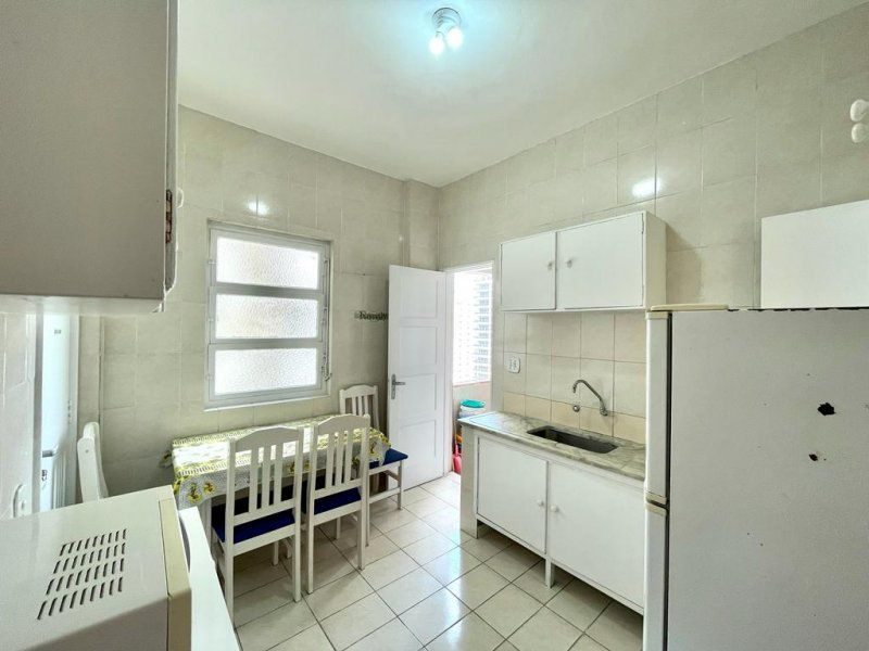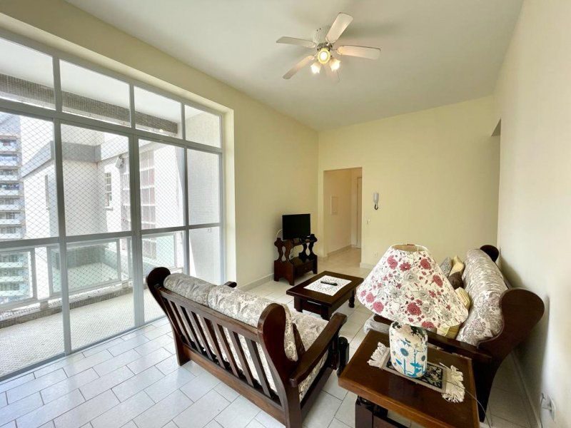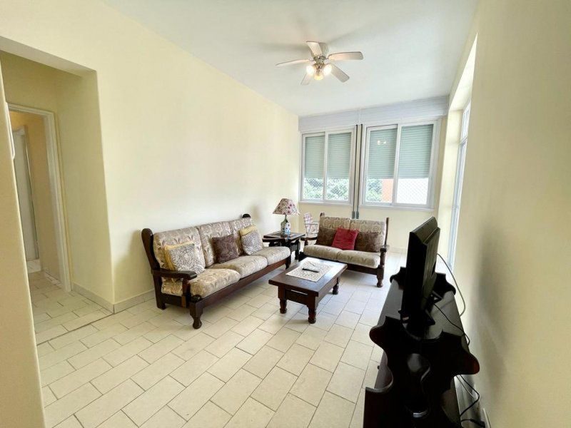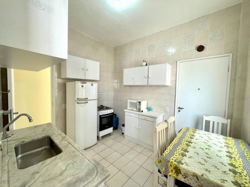 Apartamento com sacada e à 50 metros da Praia das Pitangueiras. Original, bem conservado, mobiliado, 3 dormitórios sendo 1 suíte, banheiro social, ampla sala para 2 ambientes, área de serviço, portaria 24 horas e serviço de praia.1 vaga de garagem fora do prédio.