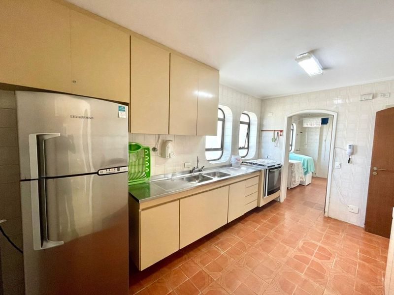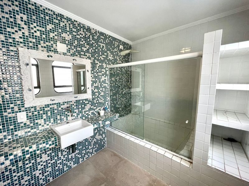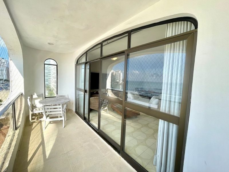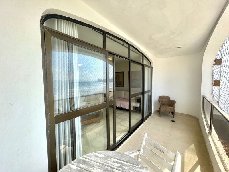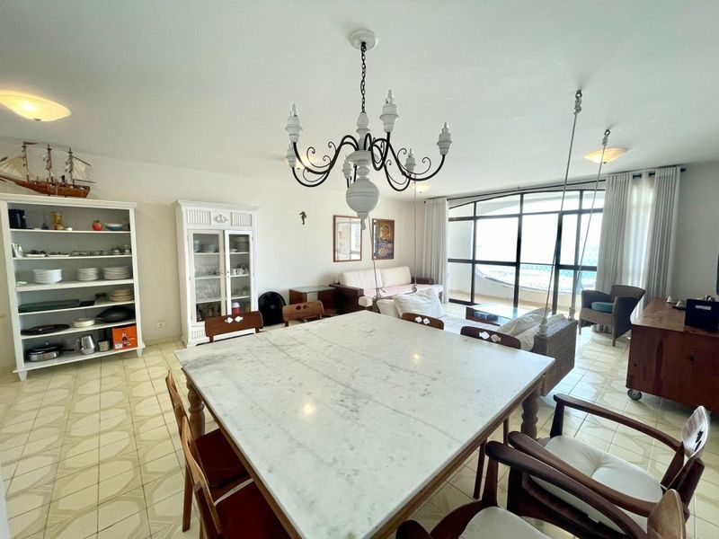 Semi mobiliado, com 3 suítes, sala para 2 ambientes, sacada com vista total para o mar, cozinha, área de serviço, 2 vagas de garagem.