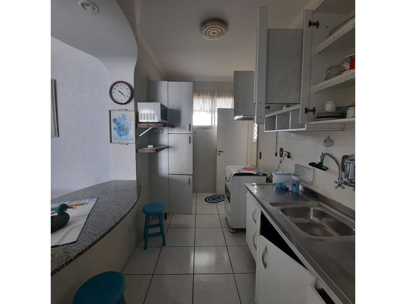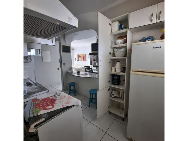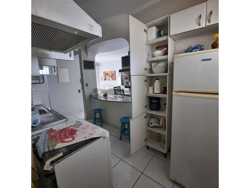 Apartamento reformado, mobiliado, 2 dormitórios, sala 2 ambientes, sacada com vista para o mar, cozinha americana com armários, área de serviço, dependência de empregada, banheiro social, banheiro de serviço, 1 vaga de garagem. Prédio com elevador, portaria 24 horas, serviço de praia, 1 quadra da praia, área de lazer, com churrasqueira, salão de festas, salão de jogos, playground e solaruim. Ótima localização.