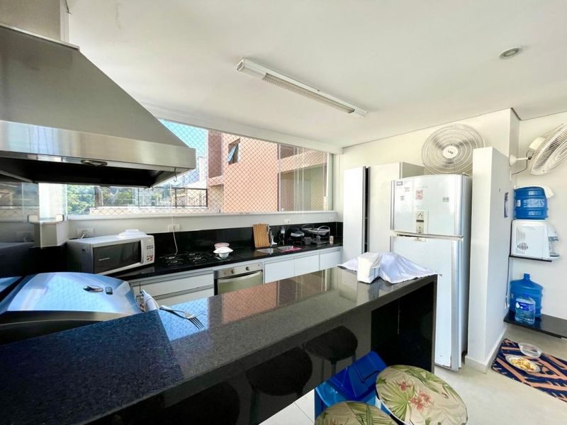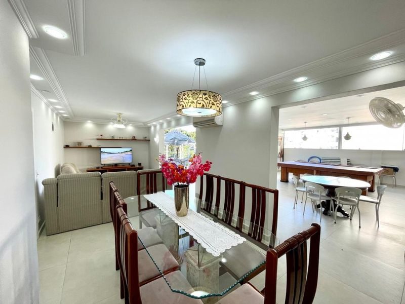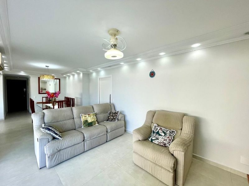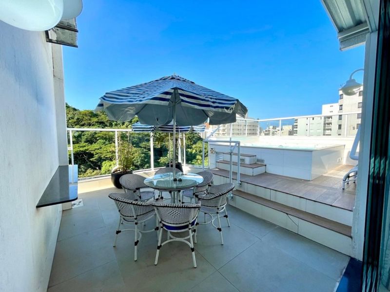 Excelente Cobertura, toda reformado, mobiliada, com 3 dormitórios sendo 1 suíte, sala ampla de 2 ambientes, lavabo, sacada + área externa com piscina e churrasqueira, cozinha com armários, área de serviço, banheiro social, banheiro de serviço, dependência de empregada (escritório), 2 vagas de garagem. Prédio com elevador, portaria 24 horas, serviço de praia. Ótima localização.