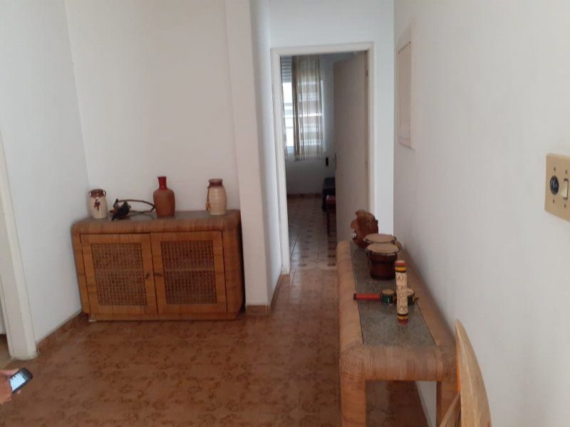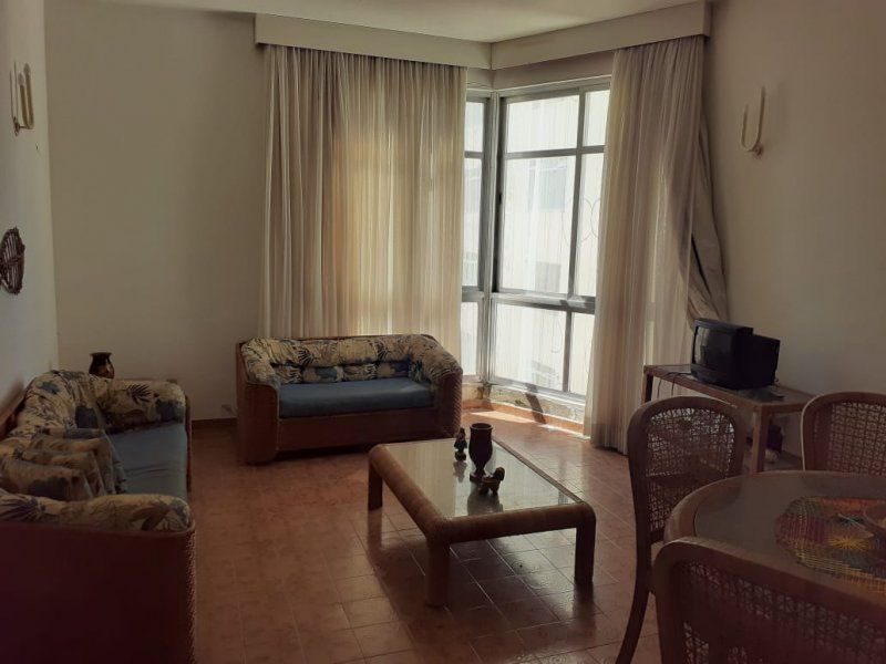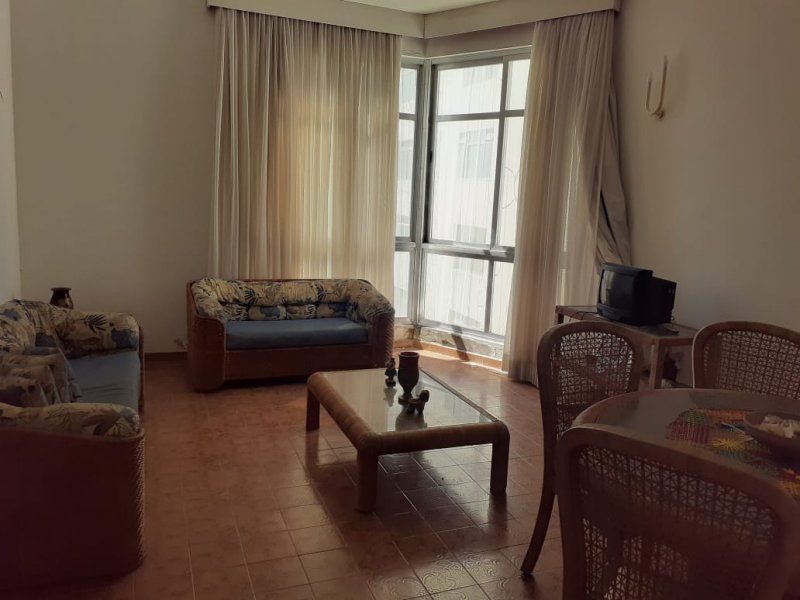 Prédio frente ao mar, apartamento de lateral com vista parcial para o mar, original conservado, semi mobiliado, 2 dormitórios, sala 2 ambientes, cozinha com armários, área de serviço, banheiro social, banheiro de serviço e 1 vaga de garagem fora do prédio. Prédio com elevador, portaria 24 horas, serviço de praia. Ótima localização.
