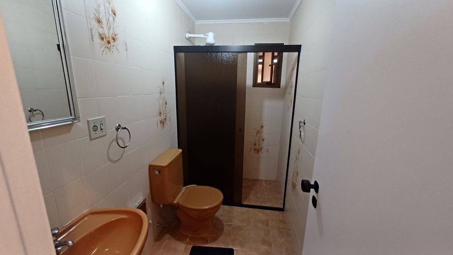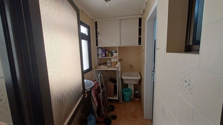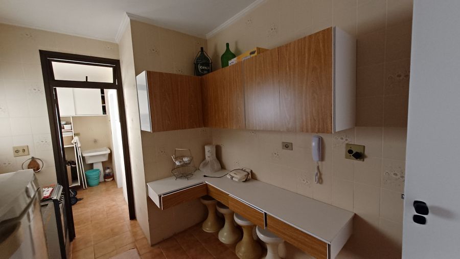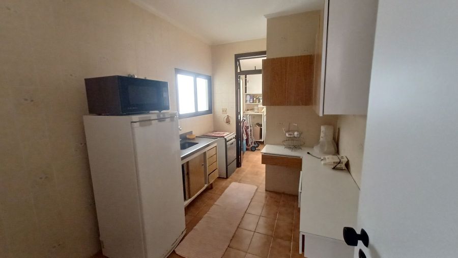 Com 85m² de área privativa, o apartamento dispõe de dois dormitórios, incluindo uma suíte e três banheiros, sala, sacada, cozinha. Além disso, o imóvel conta com dependência de empregada com banheiro e área de serviço.