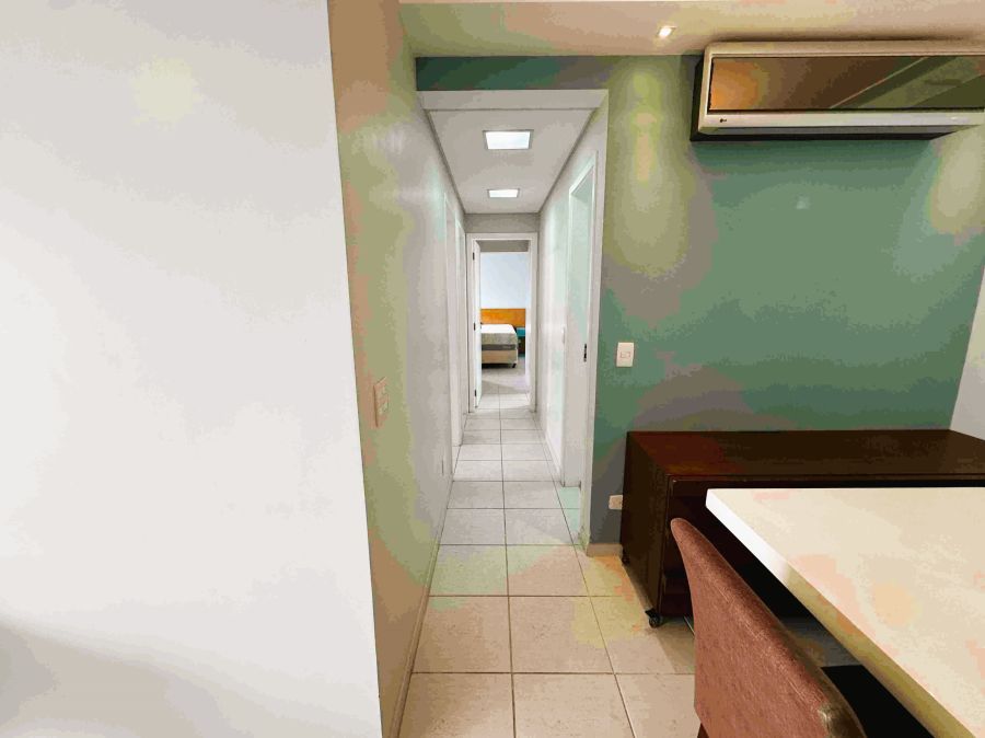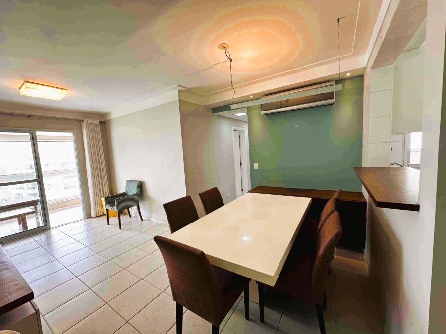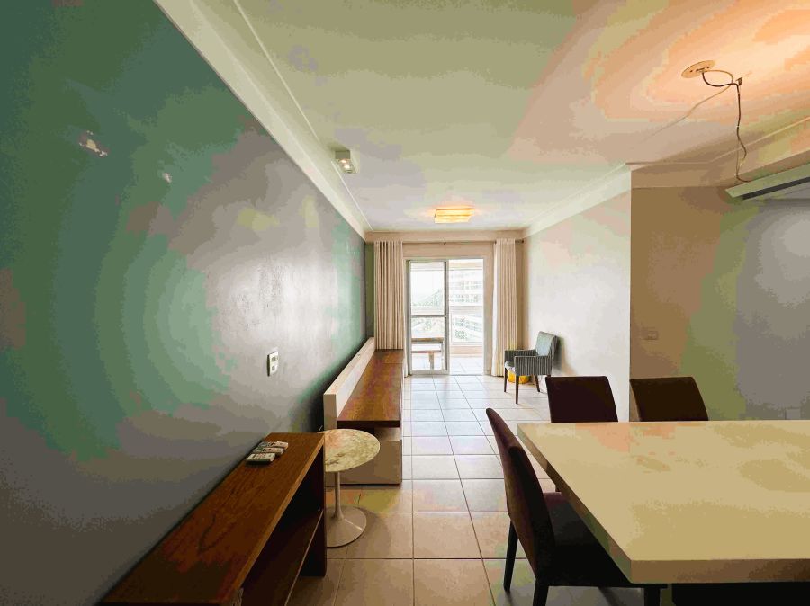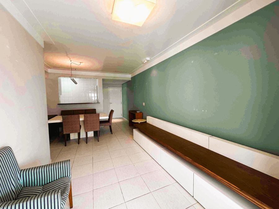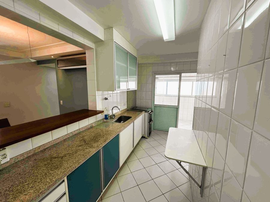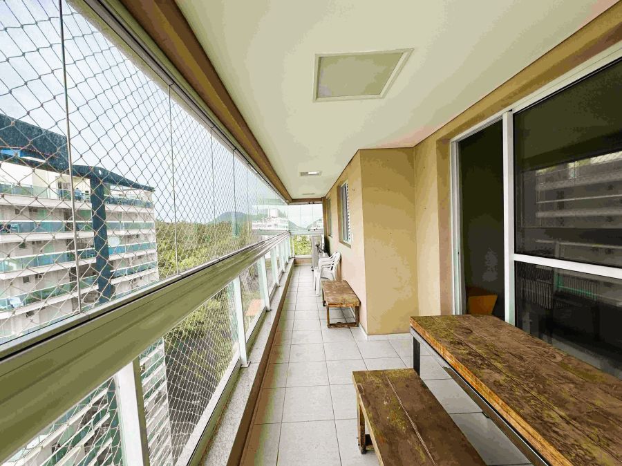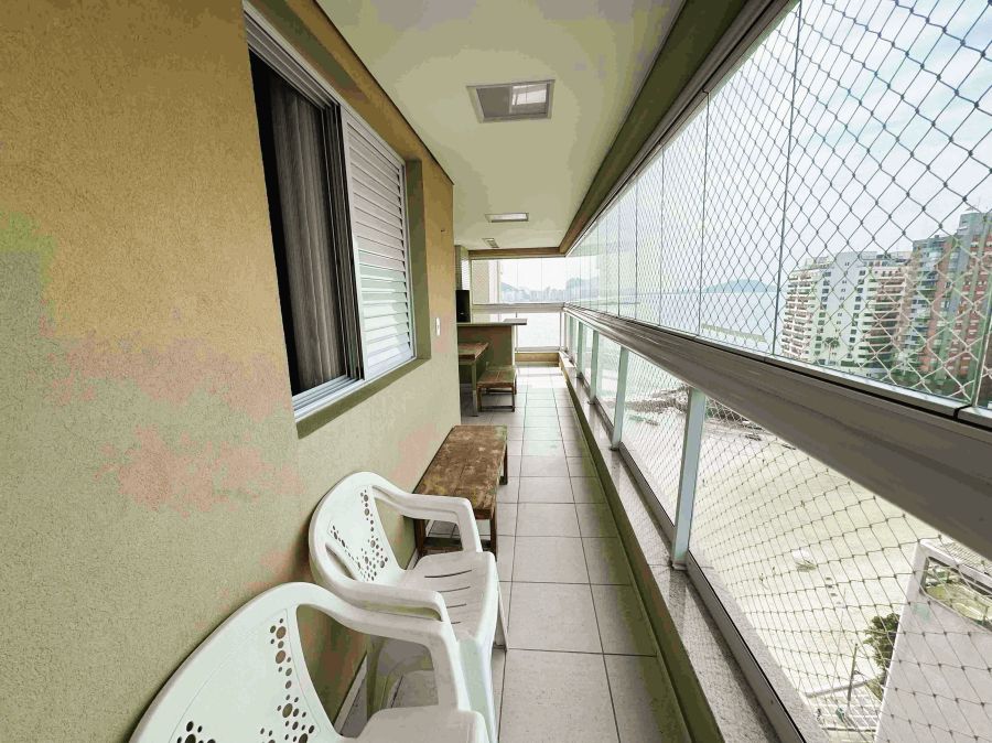 Apartamento, 110m², sala para 2 ambientes, varanda gourmet com vista panorâmica do mar e fechamento em vidro, cozinha, área de serviço, 3 dormitórios sendo 1 suíte e 2 vagas de garagem.