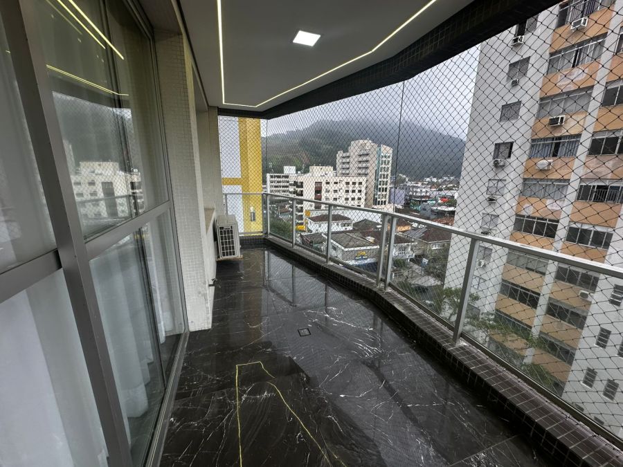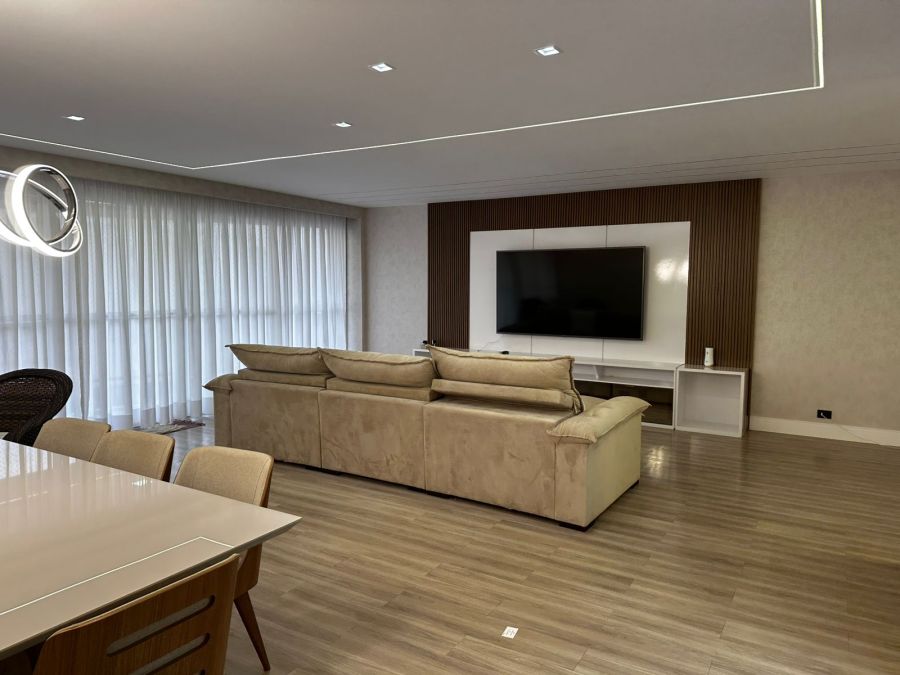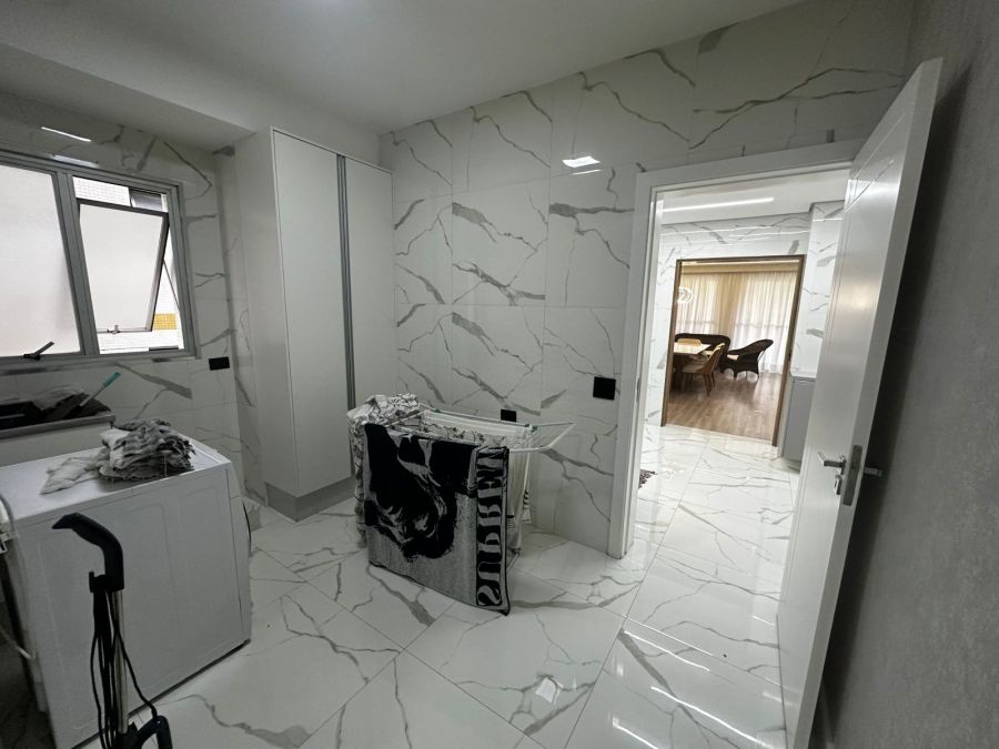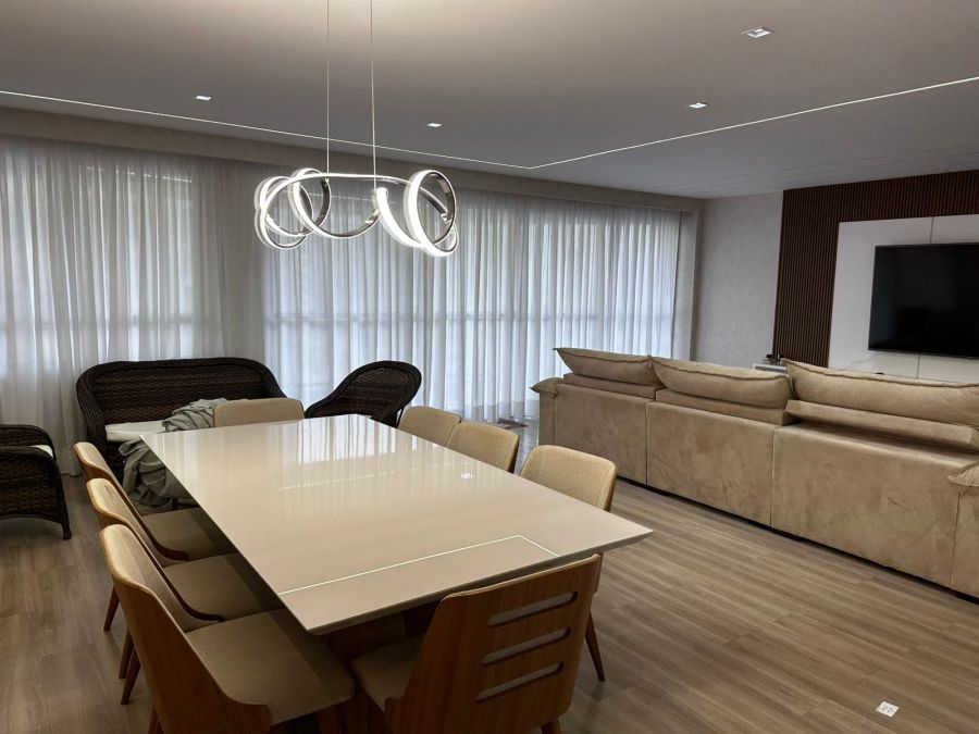 Sala com 3 ambientes, sacada com vista para o mar, lavabo, cozinha, 2 banheiros sociais, área de serviço com lavanderia, 2 vagas de garagem.