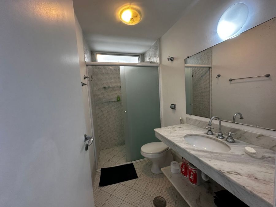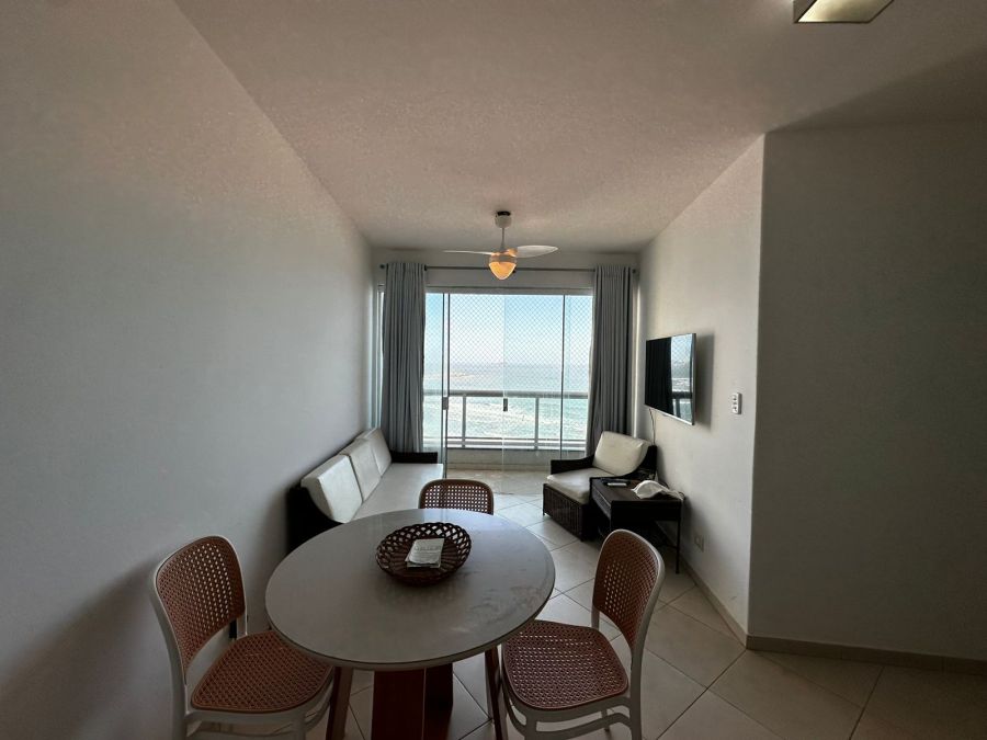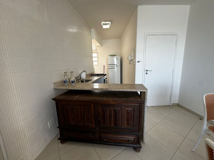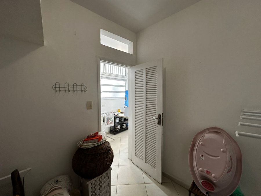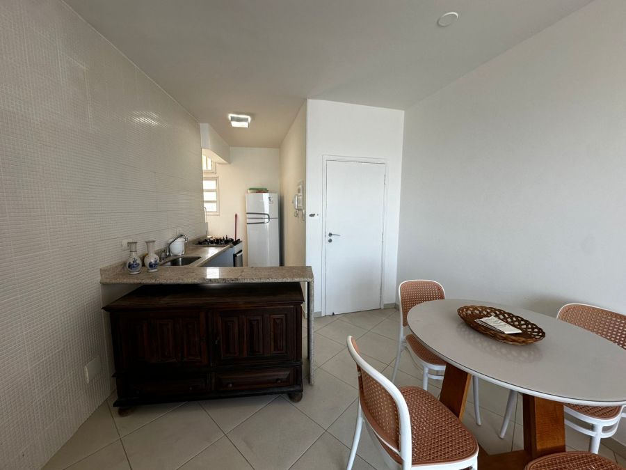 Com 75m² de área privativa, 2 dormitórios, 1 banheiro, sala, sacada com vista para o mar, área de serviço com banheiro, dependência de empregada.