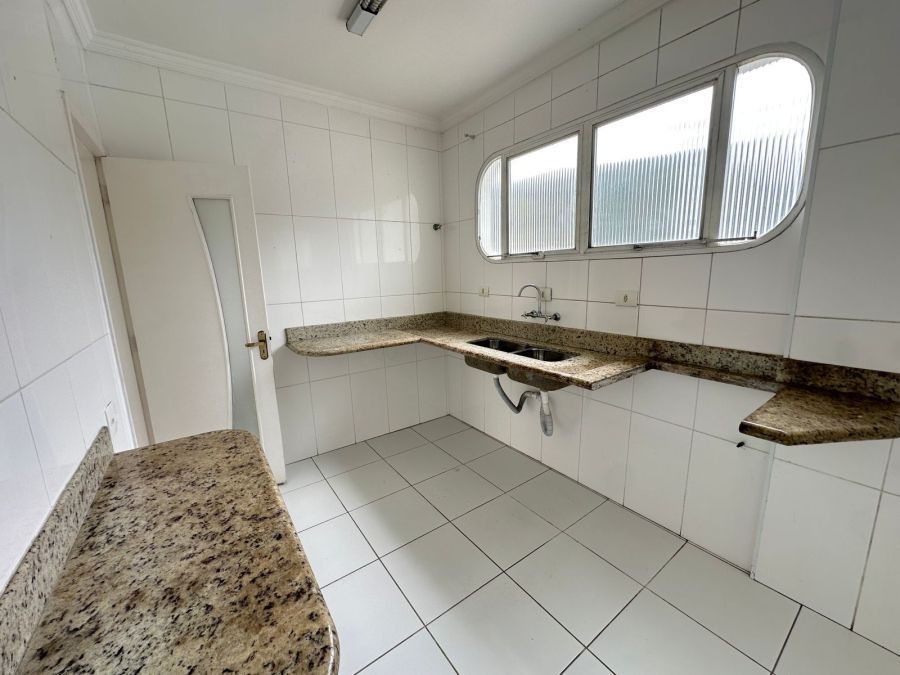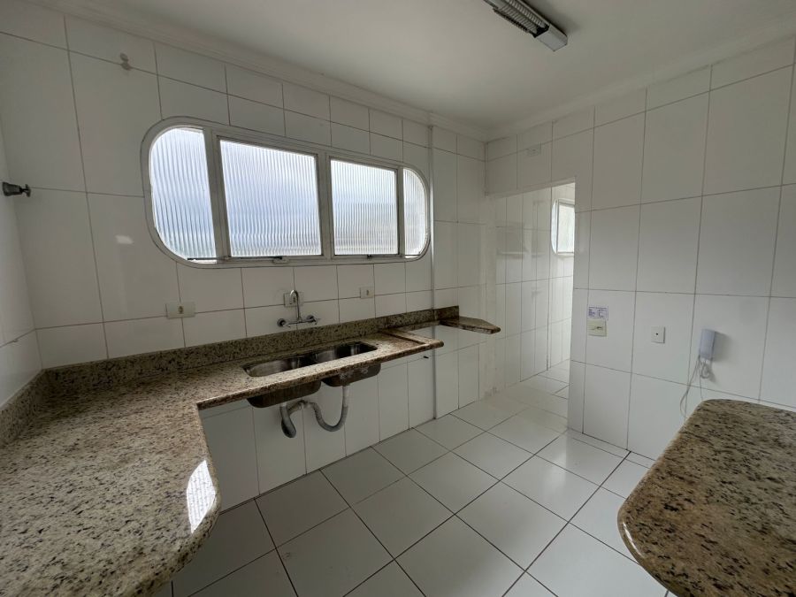 Apartamento conta com 3 dormitórios, sendo 1 suíte, 3 banheiros, sala, cozinha, área de serviço com banheiro e dependência de empregada.