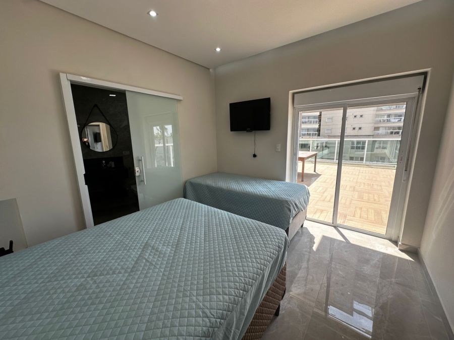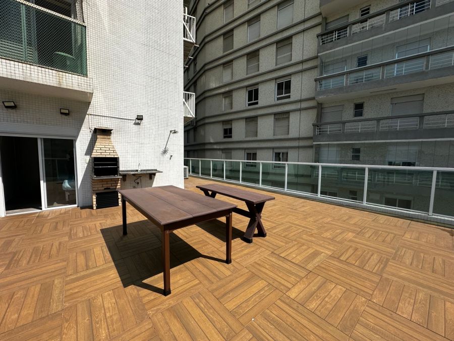 Amplo terraço privativo com Churrasqueira: Desfrute de momentos únicos com amigos e familiares, apreciando a vista e o clima agradável do Guarujá.